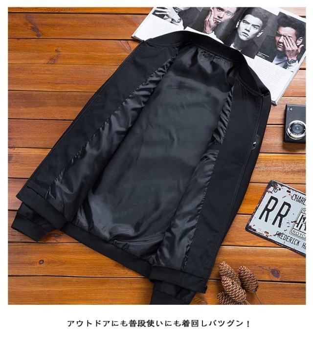 フライトジャケット 薄手 ジャケット ジャケット 無地 メンズ 秋 アウター MA-1 ジャケット 春秋 コート ブルゾン 春 カジュアル ジャンパー ミリタリージャケット スタンドカラー 立ち襟 ライトアウター ジップアップ スタジャン 通勤 送料無料