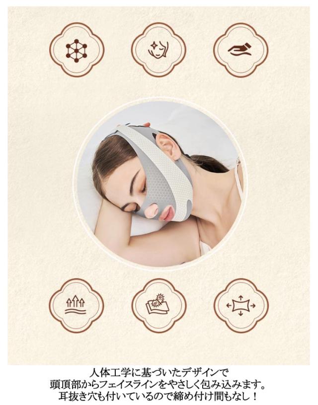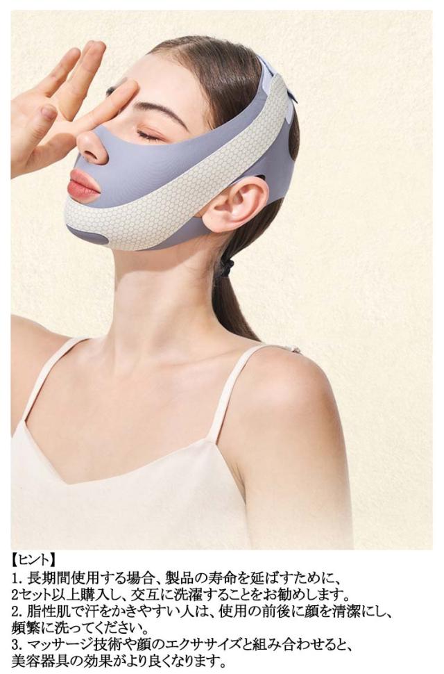 | フェイスラインを引き締めるフェイスベルト2枚セット。 料理・家事・育児・読書をしながら装着するだけ! マジックテープで引き締め度を調節でき、装着も取り外しもとても簡単! ストレッチ性が良くて、顔のツボを圧迫しない安心設計で、物理顔リフト、ほかの顔やせている方式より安全! 人体工学に基づいたデザインで頭頂部からフェイスラインをやさしく包み込みます。耳抜き穴も付いているので締め付け間もなし! フェイスラインのゆるみを解消して、若々しく見える!小顔になりたい人は是非お試し下さい。男女問わずお使い頂けます。 【使い方の提案】 最初は30分から適応を開始してください。適応後は、個人の状況に応じて1日1〜8時間使用できます。不快な場合は使用時間を減らしてください。 【ヒント】 1. 長期間使用する場合、製品の寿命を延ばすために、2セット以上購入し、交互に洗濯することをお勧めします。 2. 脂性肌で汗をかきやすい人は、使用の前後に顔を清潔にし、頻繁に洗ってください。 3. マッサージ技術や顔のエクササイズと組み合わせると、美容器具の効果がより良くなります。 【メンテナンスと清掃】 1. 2〜3日ごとに洗うことをお勧めします。あまり頻繁に洗うと、マスクの寿命が短くなります。 2. 40℃以下のぬるま湯と中性洗剤で洗ってください。長時間の浸漬は避けてください。 3. 乾かす前にタオルで水分を吸収し、無理にねじりすぎないようにして、直射日光を避けて風通しの良い場所に干してください。 | |