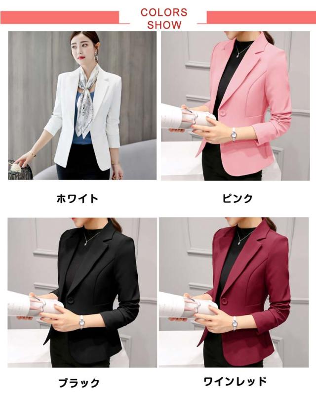 春ジャケット スリム ジャケット スーツ アウター ショート丈 レディース シワになりにくい カラフル 春ジャケット 着痩せ テーラードジャケット スーツコート カジュアル フォーマル 春秋 大きいサイズ 無地 大人女性 OL 通勤 ビジネス ギフト