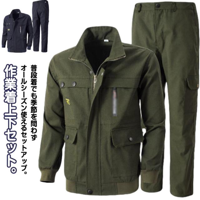 メンズ 作業服 上下セット 2点セット 丈夫 ワークマン ロングパンツ 車 カーゴパンツ 作業着 工場 ワークウェア 作業着 ジャケット 耐磨耗 ユニフォーム 制電 作業服 自転車 ガーデニング 掃除 ミリタリー 工事 現場 機能性 送料無料 春