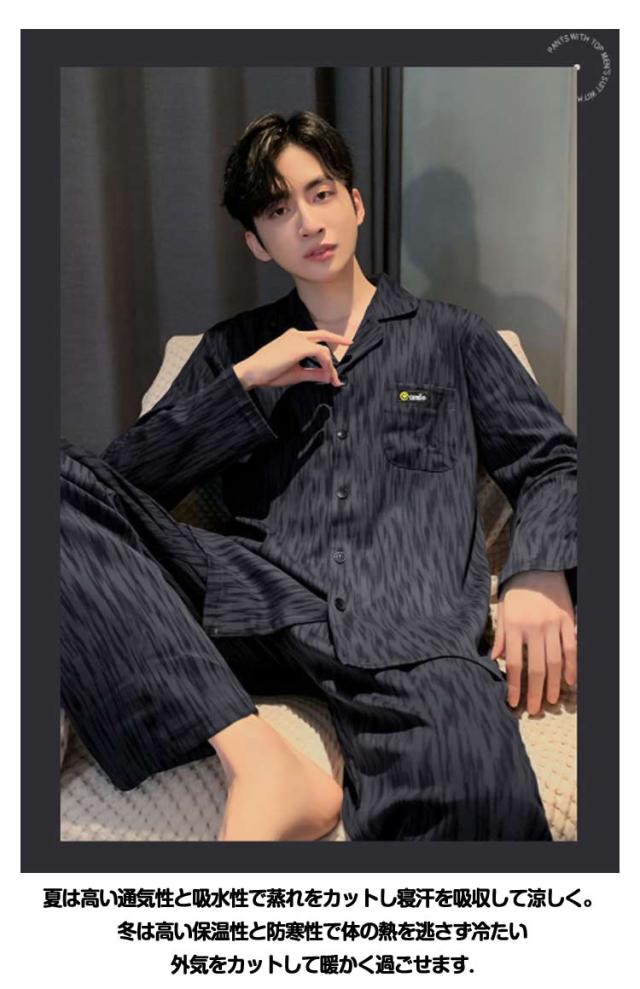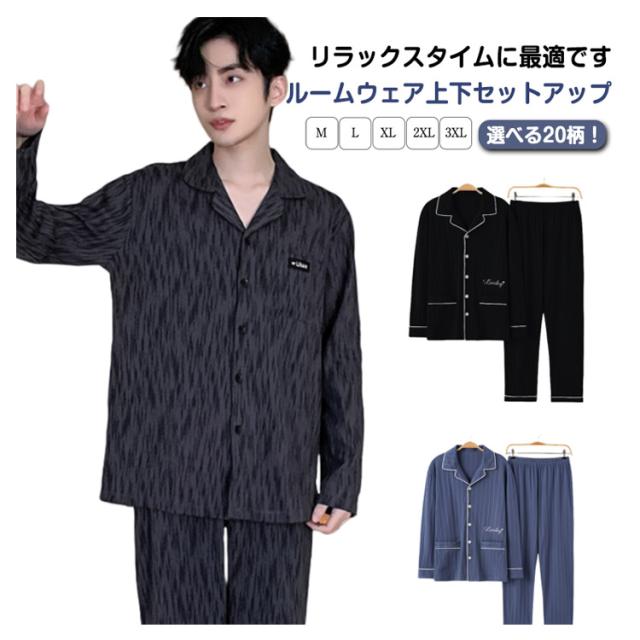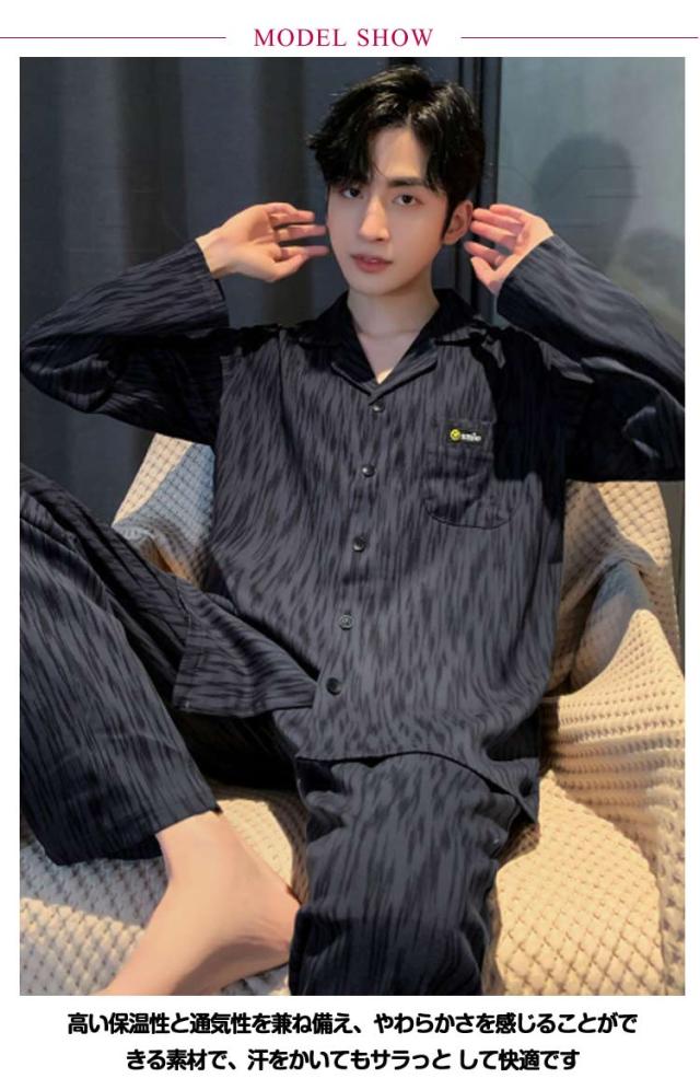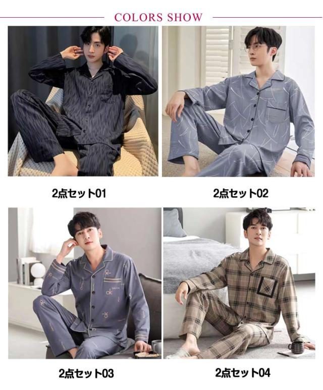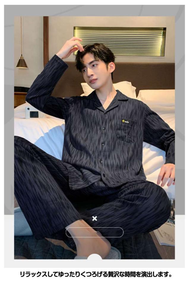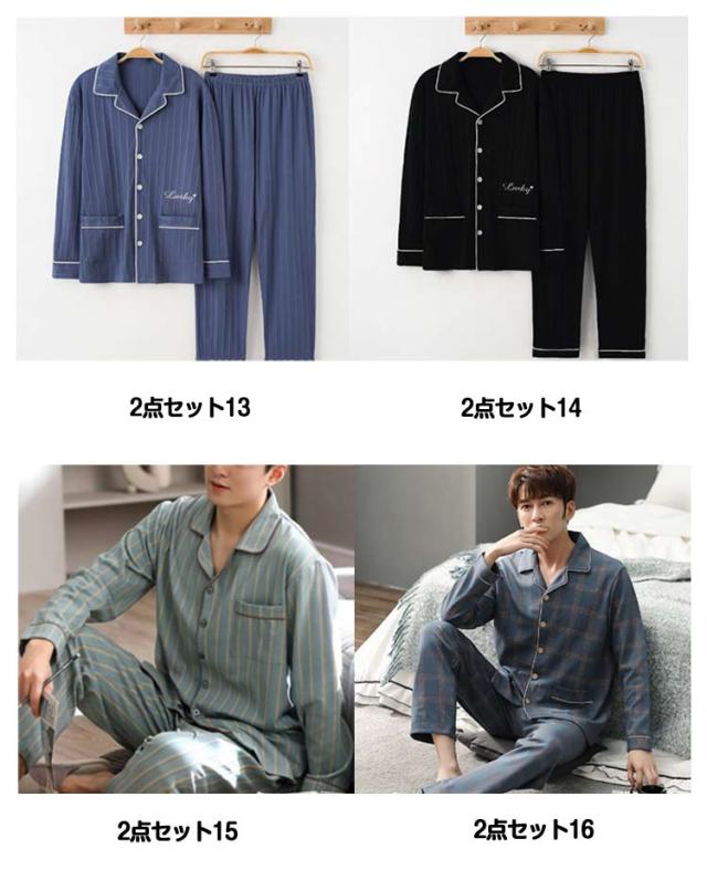 前開き 長袖 春 寝巻き 男性 メンズ リラックスウェア 秋 薄手 2点セット Tシャツ 長ズボン 長袖 ルームウェア 上下セット 綿 コットン ナイトウェア パジャマ 入院 紳士 部屋着 ルームウェア 入院 ロングパンツ 寝巻き 大きいサイズ 父の日 ギフト 敬老の日