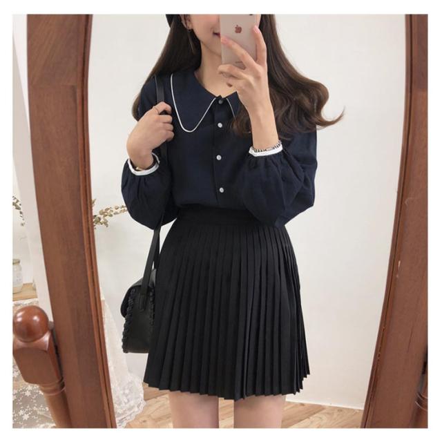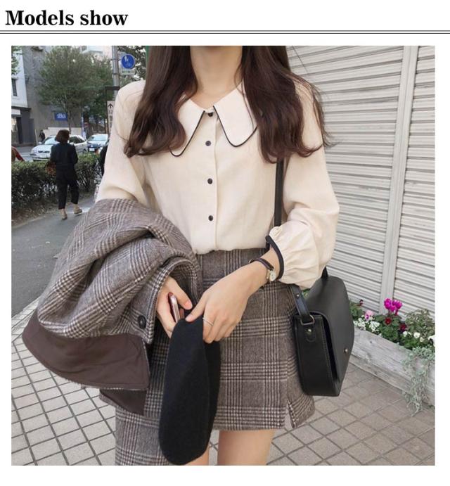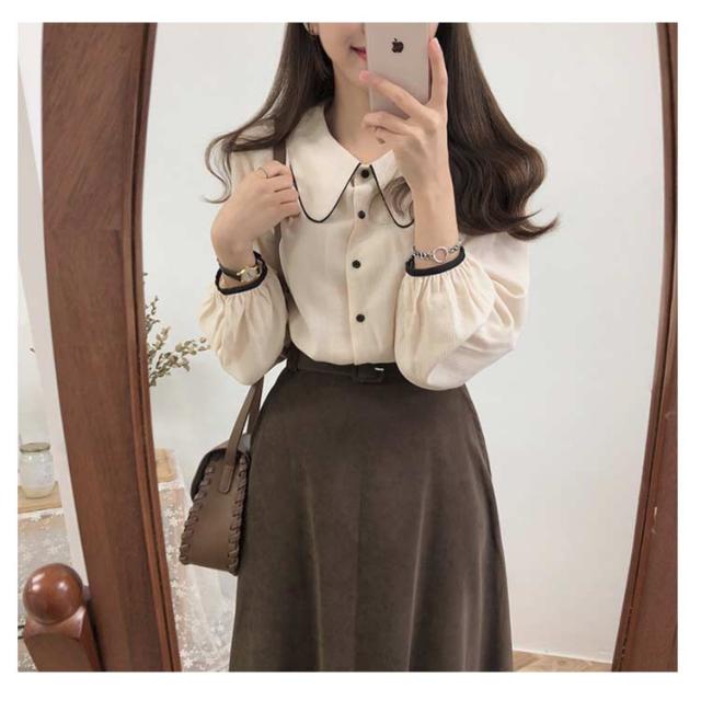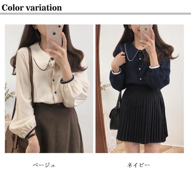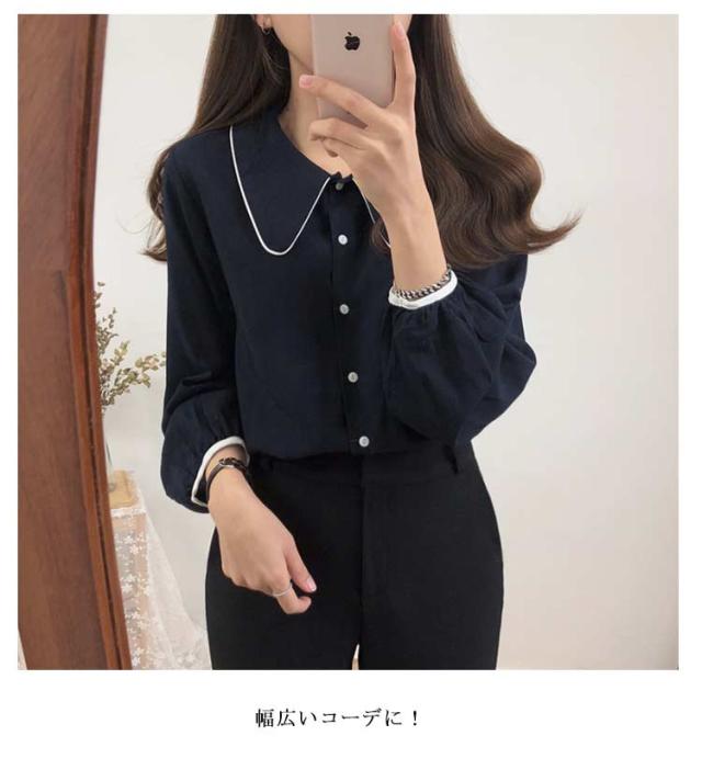 ブラウス パイピング シャツ トップス 長袖 レイヤード 配色 シャツ 重ね着 シャツブラウス かわいい 大きいサイズ ゆったり ジャケット インナー おしゃれ カジュアル 春 秋