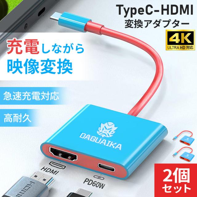 2in1 Type-C HDMI 変換器 4K 充電 2個セット タイプC 変換ケーブル TypeC USB-C アダプター アダプタ ミラーリング ケーブル スマホ iPhone Android Mac Book PC パソコン 携帯 iPad Switch スイッチ ゲーム 映画 ハブ 対応 出力 映像出力 タイプc 急速充電 変換プラグ