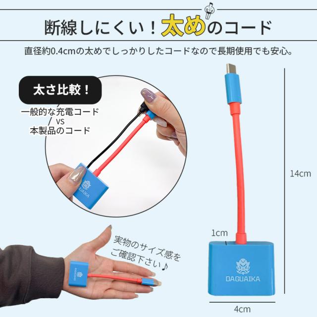 黒や白が多いコード類の中でも混ざらず区別しやすいです。