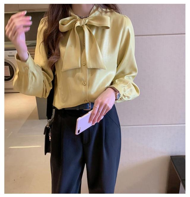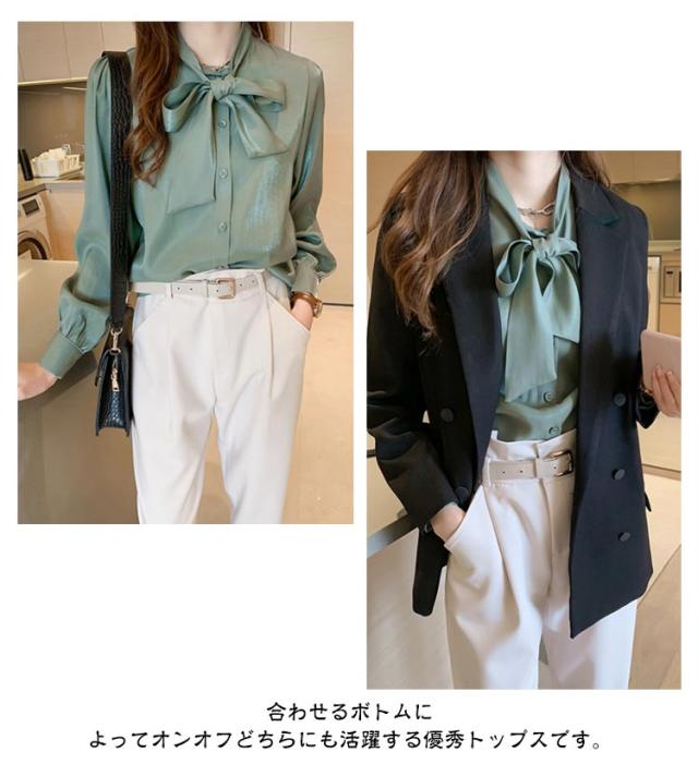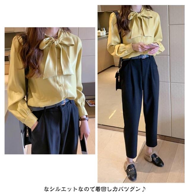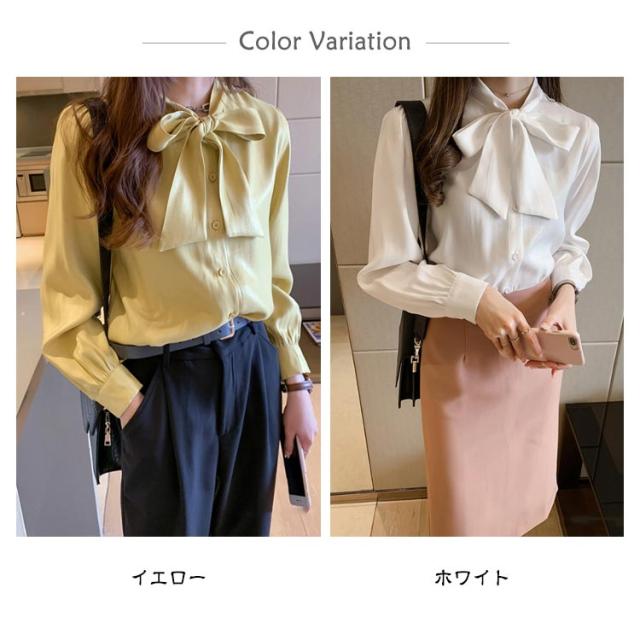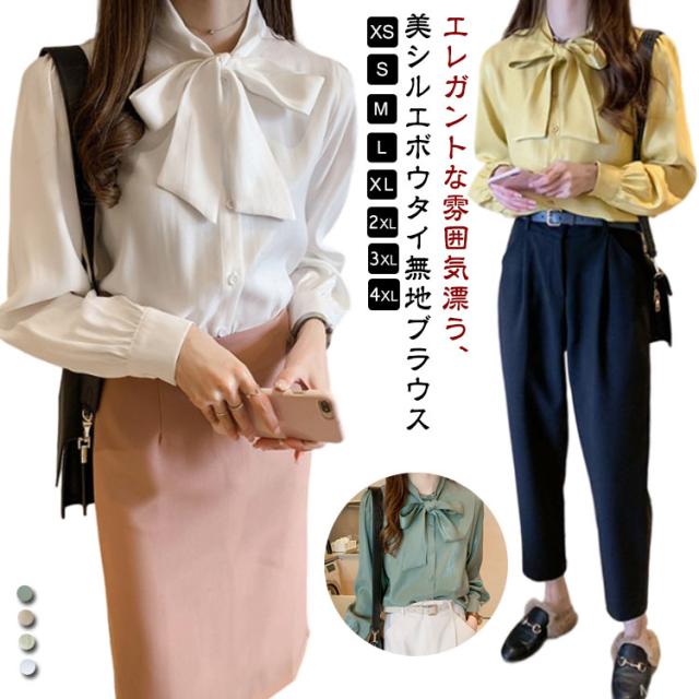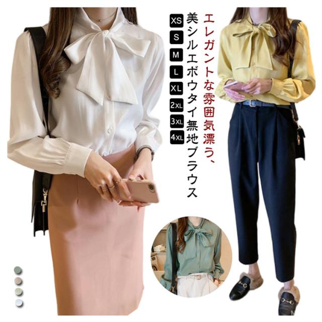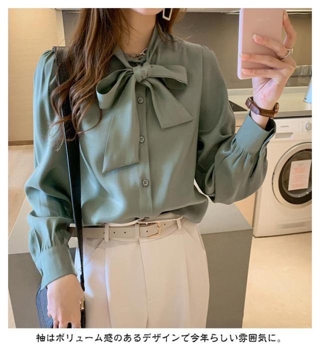 シャツ 冬 無地 長袖 送料無料 シャツブラウス 秋 ボウタイブラウス 送料無料 夏 ボウタイ リボン エレガント ブラウス ふんわり 上品 トップス リボンタイ リボン襟 レディース バルーン袖 ボリューム袖 オフィス カジュアル