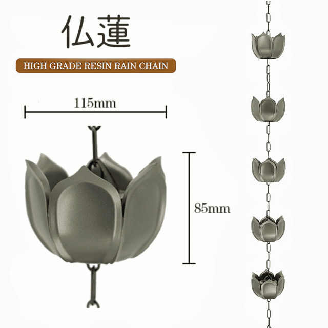 雨の日と佛蓮は相性が良く、まるで水面に浮かぶような優雅で幻想的な雰囲気を与え、神聖で清らかな心を感じさせてくれます。その姿は、視覚と心を浄化する力を持っています。美しいデザインの5個の佛蓮がレインチェーンを際立たせます。ABS製の佛蓮は、庭やパティオに魅力と優雅さを加え、風に揺れるたびに幻想的で美しい雰囲気を作り出します。