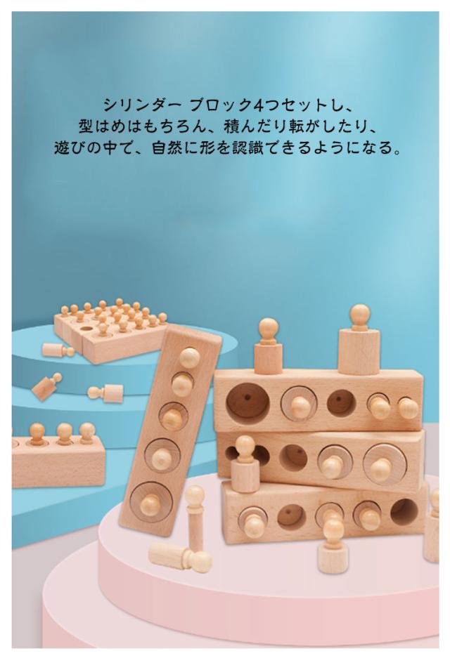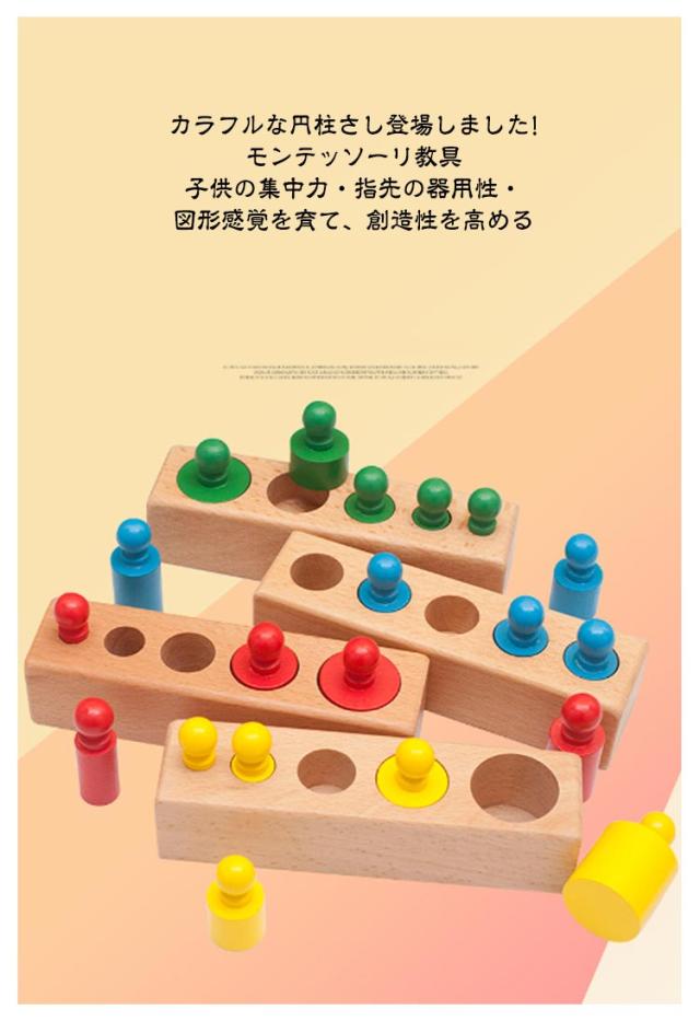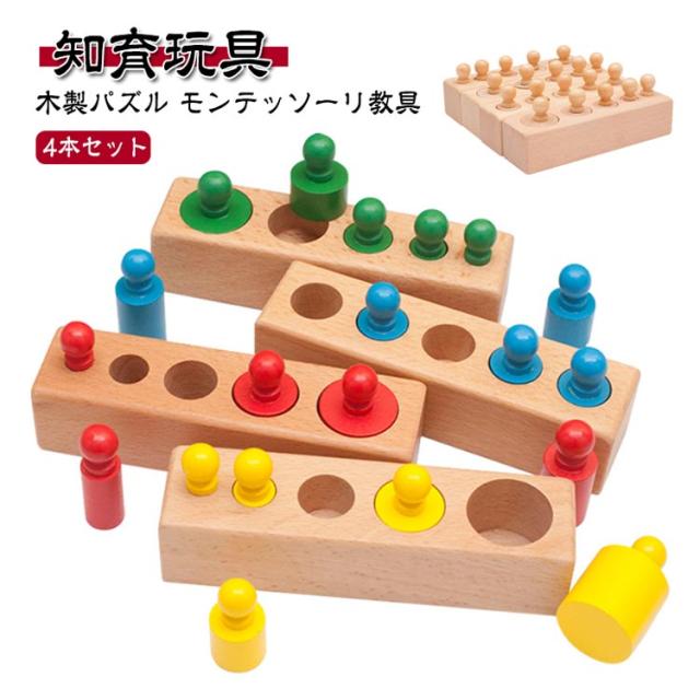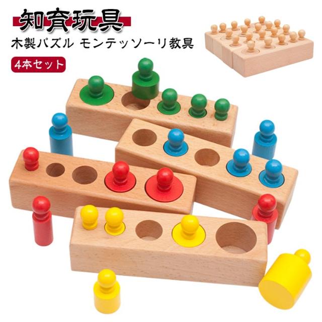 モンテッソーリ教育 モンテッソーリ教育 知育玩具 木製パズル 知育おもちゃ おもちゃ 4本セット カラフル 円柱さし 感覚教育 知育 子どもの思考力を高める玩具 女の子 男の子 1歳 2歳 3歳 誕生日 プレゼント