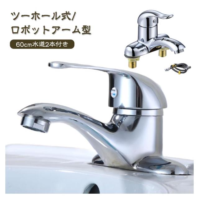 洗面台 シングルレバー 手洗いボウル用 蛇口 ツーホール 冷温切替 フル回転ヘッド 洗面台蛇口 2穴 後付け 2穴洗面用水栓 洗面水栓 ツーホール式 浴室水栓蛇口 混合水栓 真鍮製立水栓 取り付けホース付き 360°回転 混合水栓 シャワーが切り替え 台付き2穴