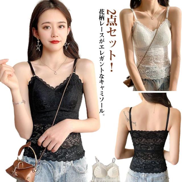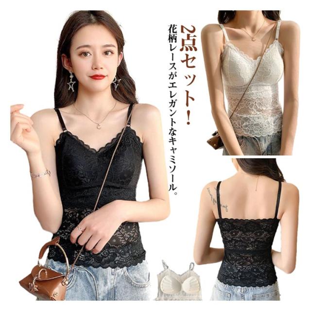 | 2点セット!花柄レースがエレガントなキャミソール。 女性らしさ溢れる魅力的なインナーです。 伸縮性もよく、楽な着心地なのでナイトブラとしてもおすすめ キャミソールやチュニック・胸の開いたカットソーやワンピース、シャツのインナーにも | |