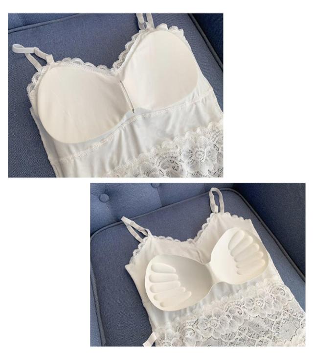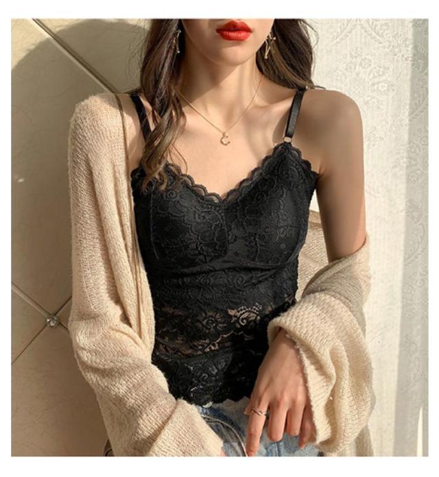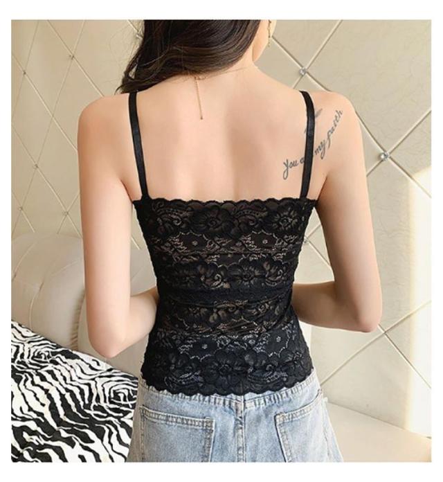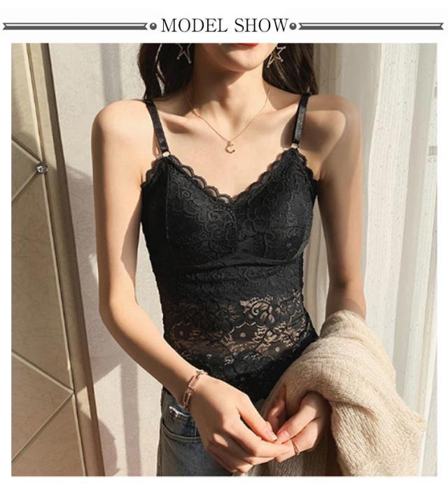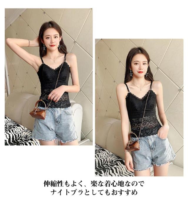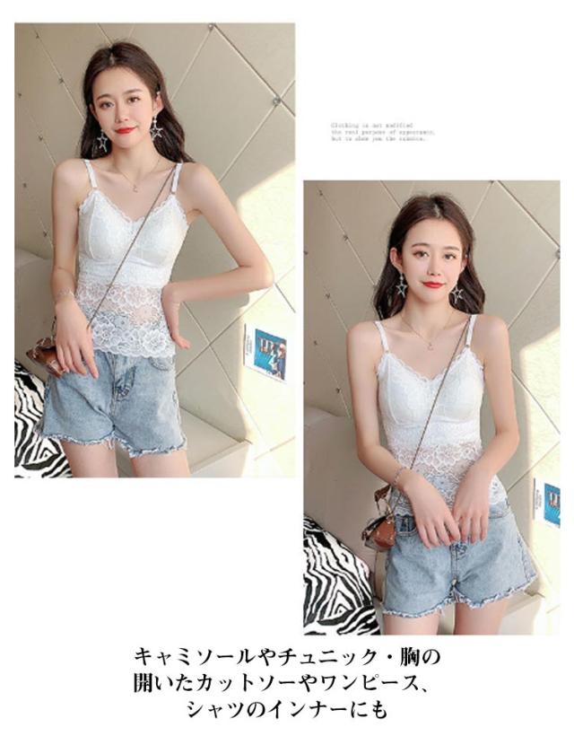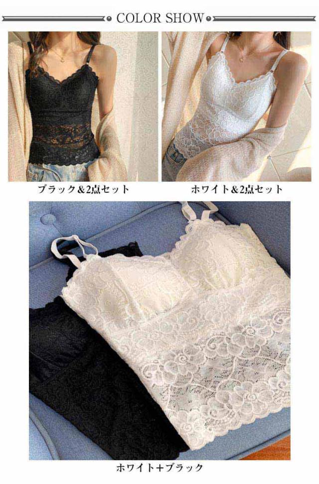 カップ付き 透け感 2点セット キャミソール タンクトップ 2点セット 女性用 ブラキャミソール レディース ブラキャミ 総レース Vネック 無地 セクシー おしゃれ ノースリーブ インナー トップス ブラック ホワイト 黒 白 送料無料