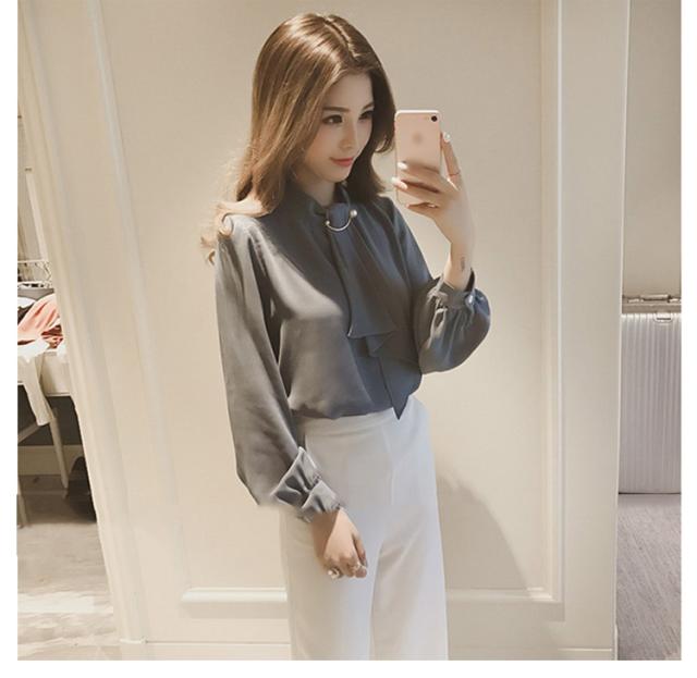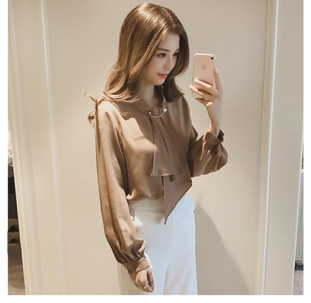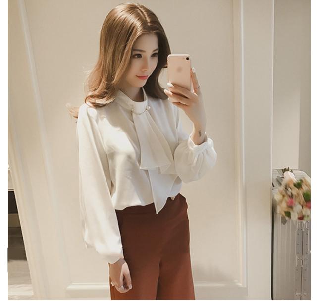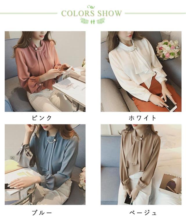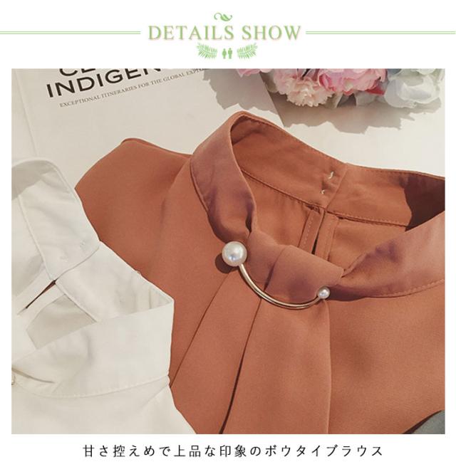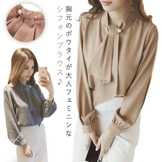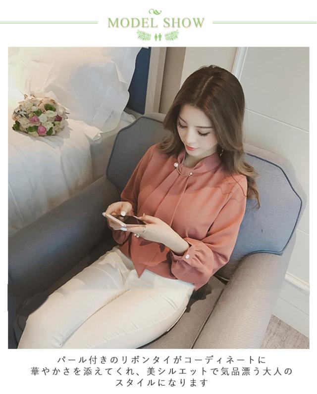 パール付 可愛い レディース ボウタイブラウス L きれいめ 胸元パール ボウタイブラウス オフィス トップス カットソー シンプル 無地 フェミニン 上品 シャツ M 大人 おしゃれ フォーマル 入学式 入園式 卒業式 卒園式 春 20代 30代
