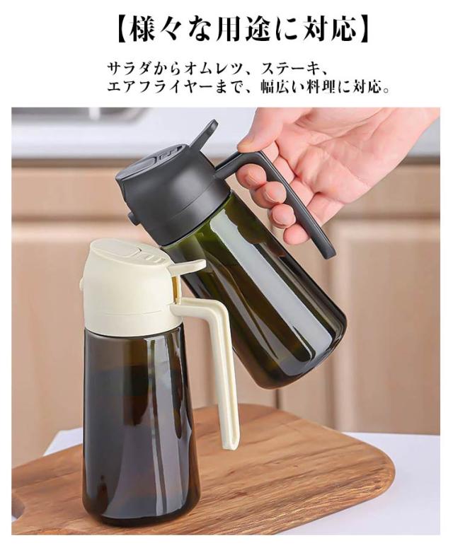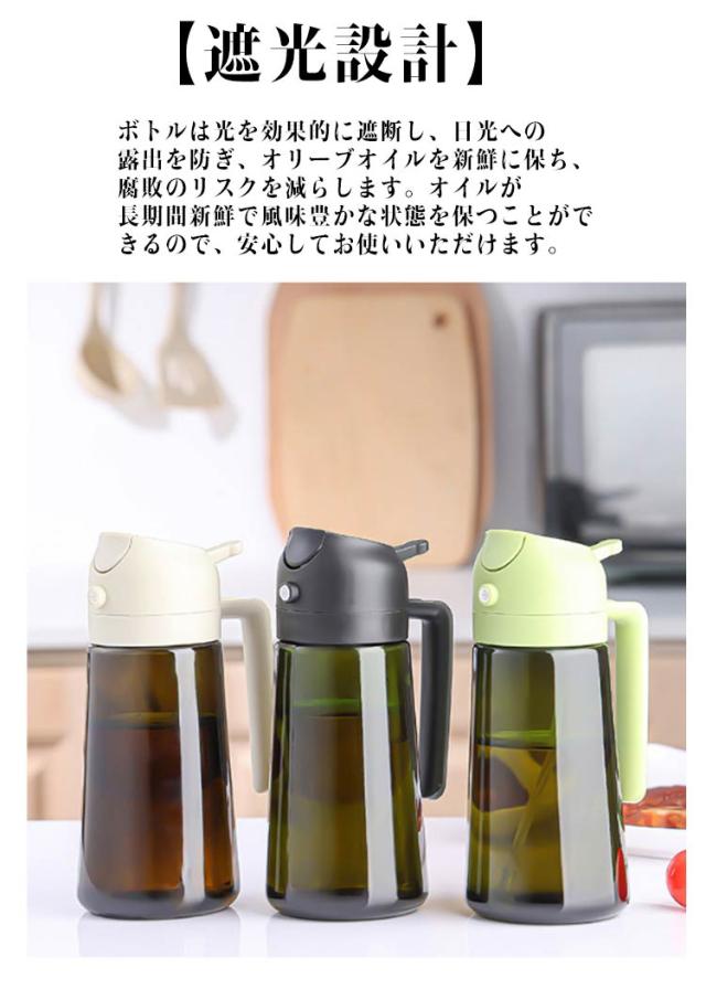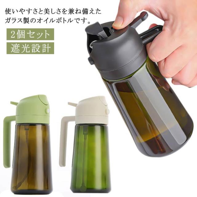オイルスプレー オイルスプレー ガラスオイル 2個セット 2イン1 油ポット オリーブオイル 遮光 オイルボトル 液だれしない 470ml 霧吹き スプレーボトル 注ぎ口付き キッチン用品 料理用 サラダ バーベキュー
