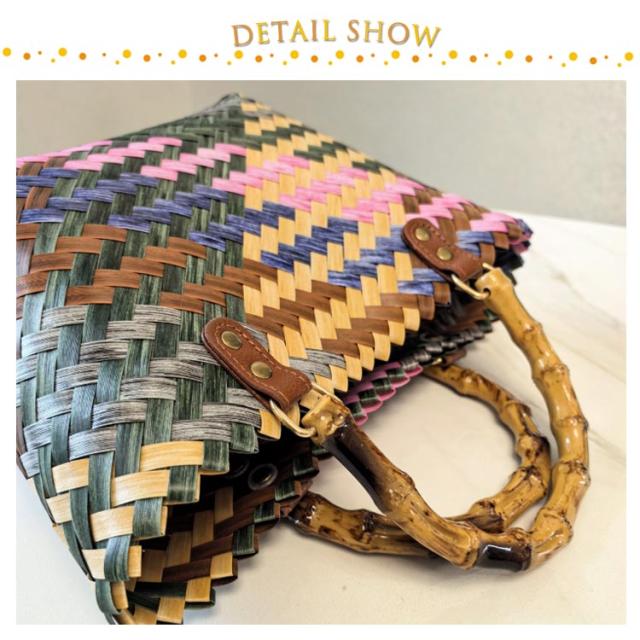 マチ広 大人 小さめ 自立 浴衣 かごバッグ ミックスカラー カゴバッグ バンブーハンドル トートバッグ 花火大会 花見 ビーチ プール 海 お祭り 春バッグ 夏 バッグ かごバッグ 上品 かわいい