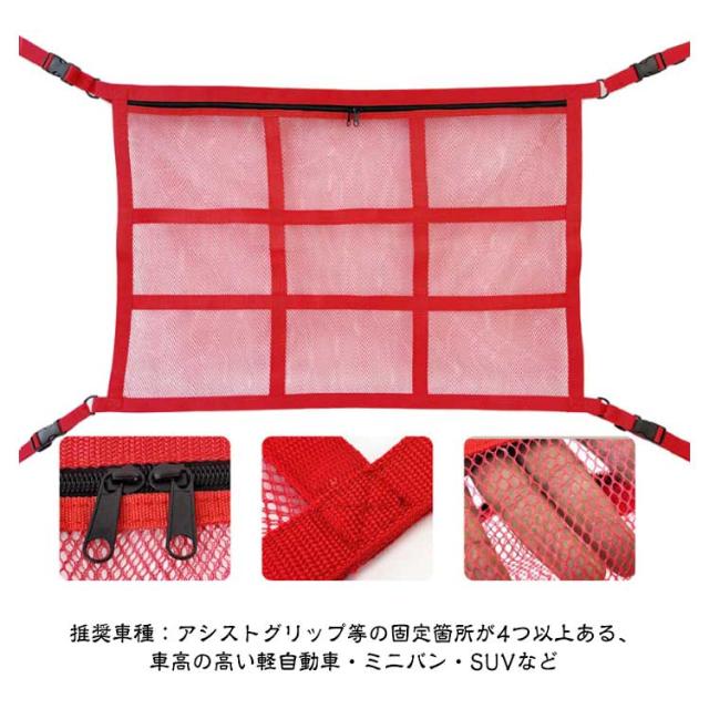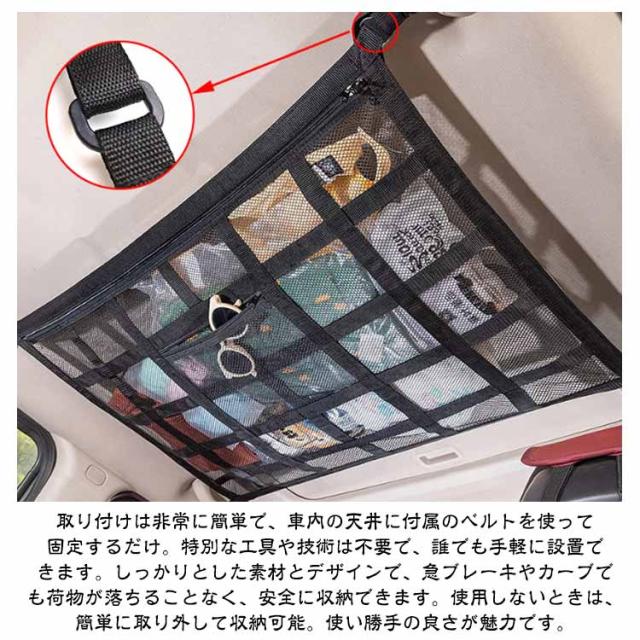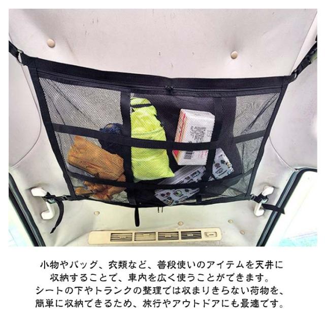 収納ネット ジッパー付き 天井ネット 収納 ネット 天井収納 カー用品 車 ルーフネット カーゴネット ラゲッジネット 旅行 車中泊 車 キャンプ 荷物落下防止 たるまない マルチネット 天井 アウトドア 車用 カー用品 整理整頓