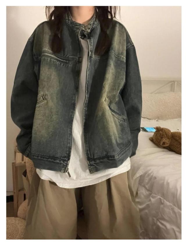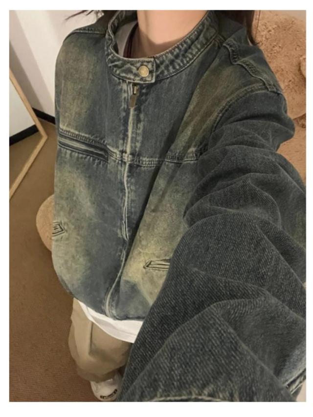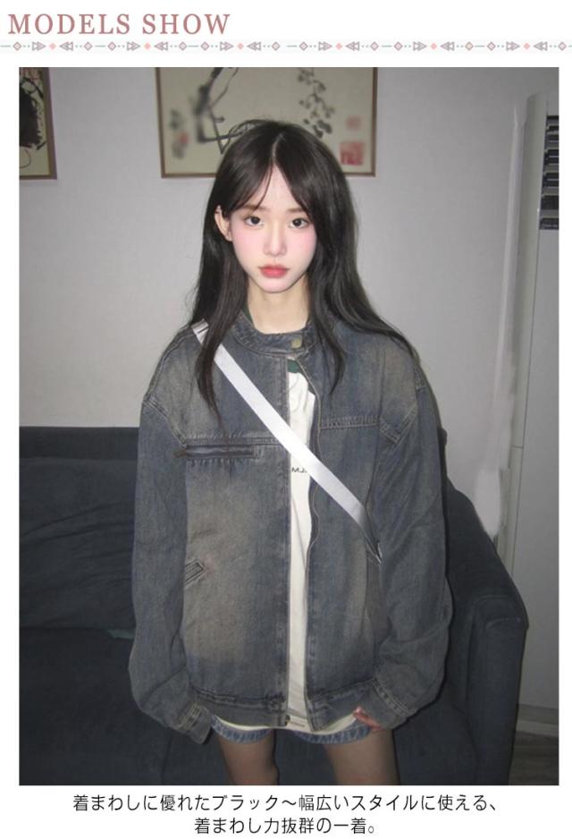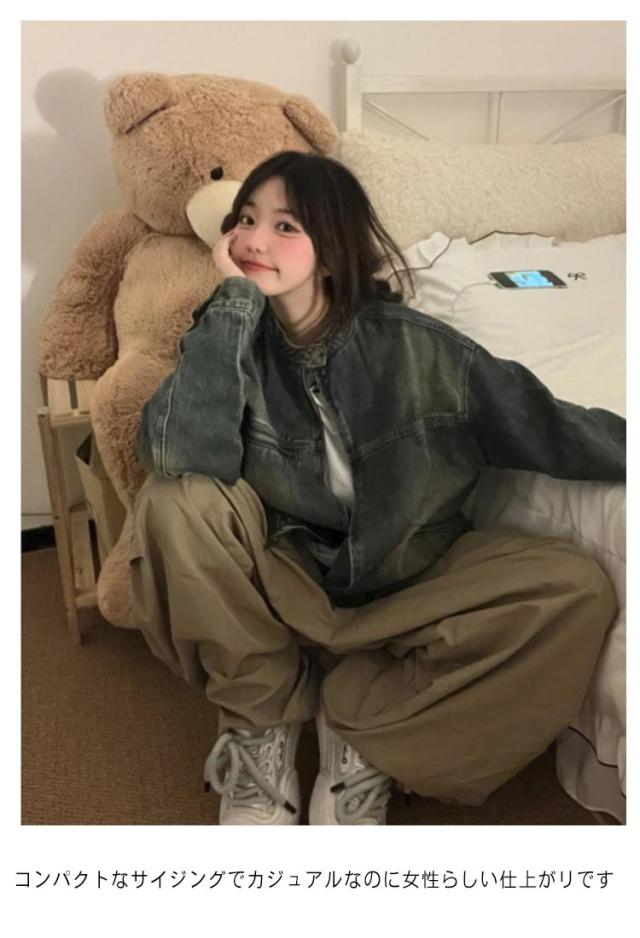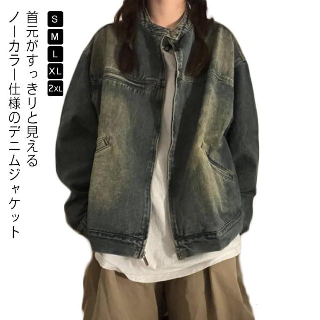 アウター デニム Gジャン ショート ノーカラー ライトアウター デニムジャケット 長袖 ゆったり ジージャン ジャケット スリム ジャケット ジージャン ノーカラー 羽織 カットオフ ショート丈 大人 トップス 韓国 ファッション アウター