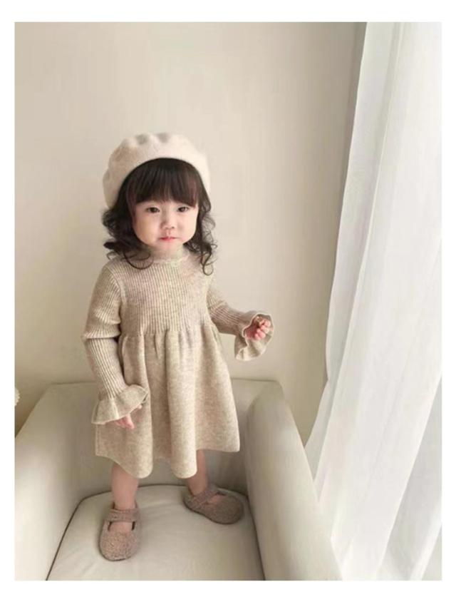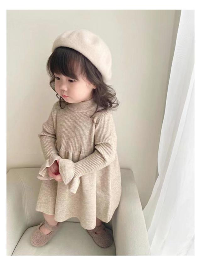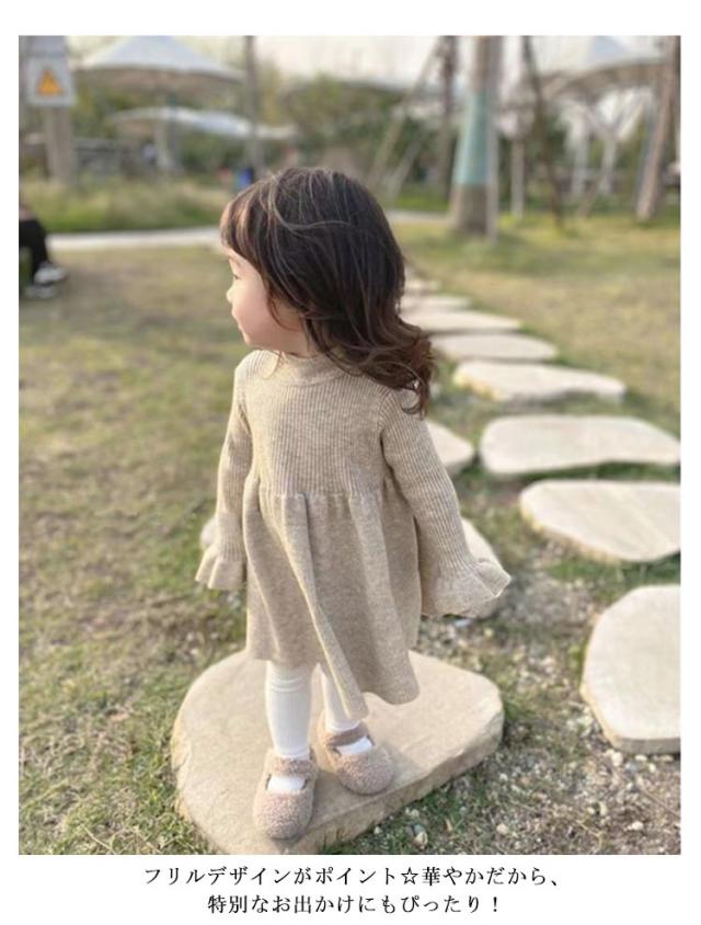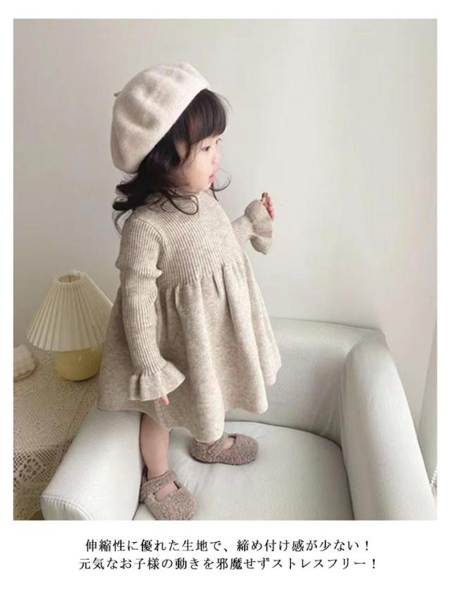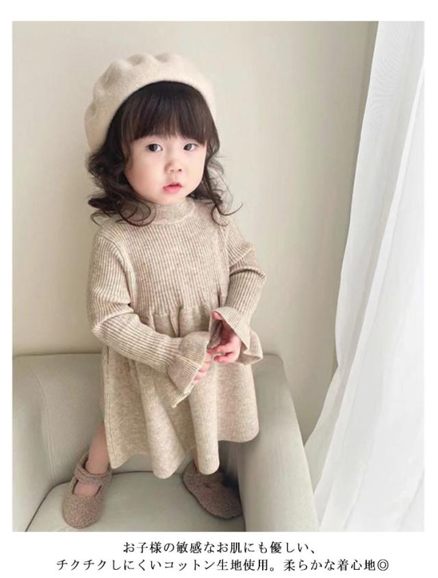 チュニック ベビー 長袖 ワンピース 女の子 服 春秋 赤ちゃん ニット 子供服 ベビーワンピース 韓国風 キッズ ベビー服 ワンピ フリル フレア かわいい シンプル 子ども服 カジュアル 可愛い 無地 シンプル ひざ丈 通園 ベビー ギフト プレゼント