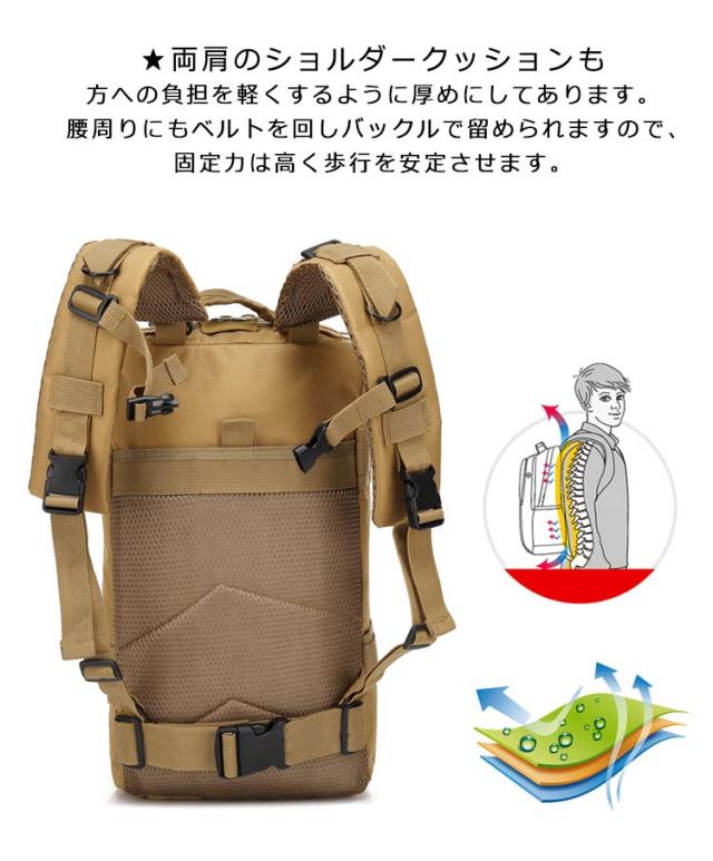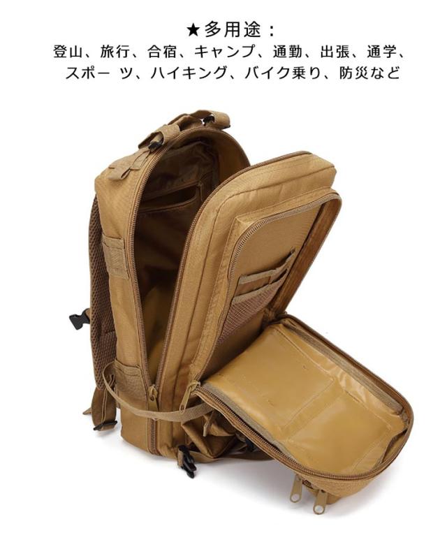 | ★撥水加工:表面は撥水加工の防水ナイロンを使用し、雨風に強い構造 急なにわか雨などに遭遇しても浸水を極力軽減します。登山やハイキングなどに最適。※完全に防水加工ということではありませんので、ご注意ください。 ★収納性:様々なポケット付き、たっぷり収納できます。手帳、ペンや携帯などの小物を仕分け収納できるポケットガあります、整理しやすい。登山や通勤通学、タウンユースなど様々なニーズにお応えします。 ★両肩のショルダークッションも方への負担を軽くするように厚めにしてあります。 腰周りにもベルトを回しバックルで留められますので、固定力は高く歩行を安定させます。 ★多用途:登山、旅行、合宿、キャンプ、通勤、出張、通学、スポー ツ、ハイキング、バイク乗り、防災など | |