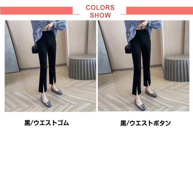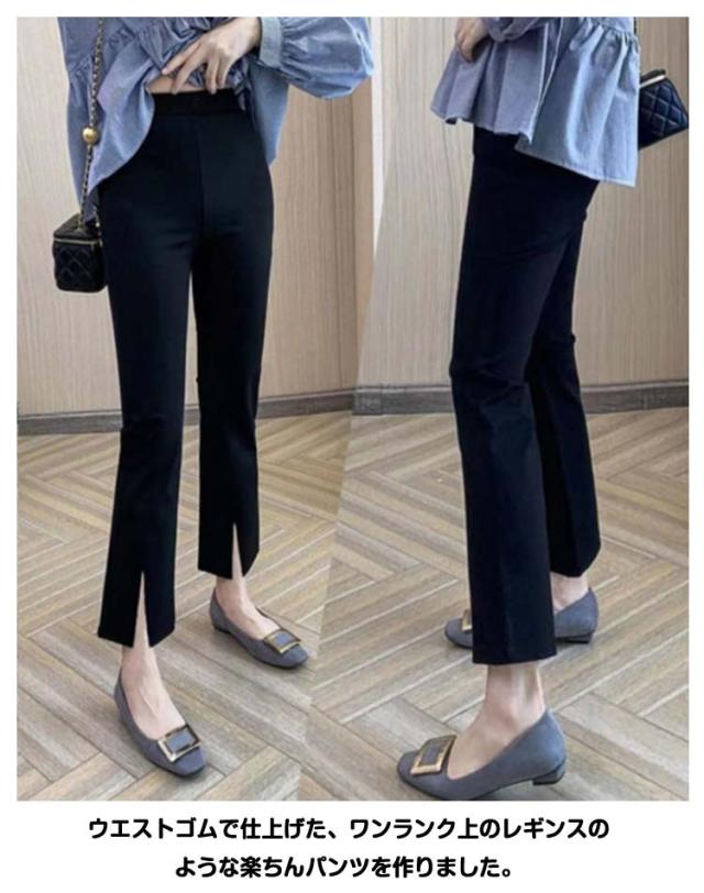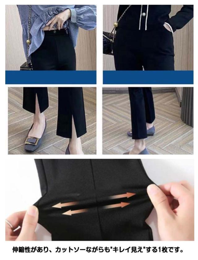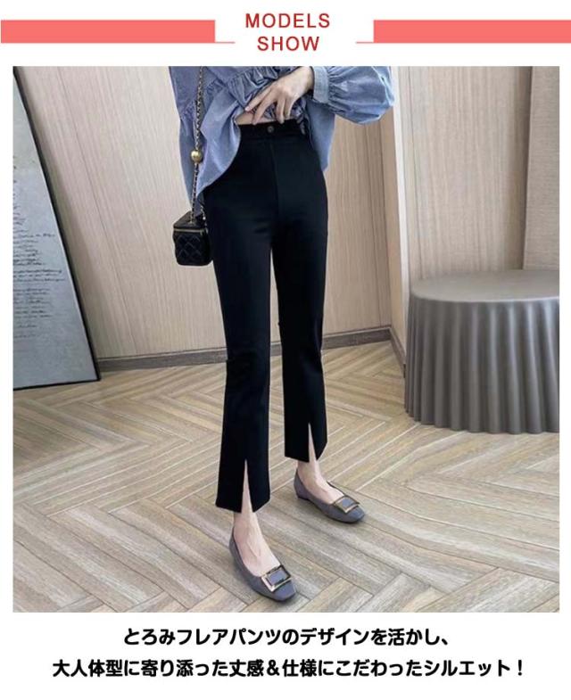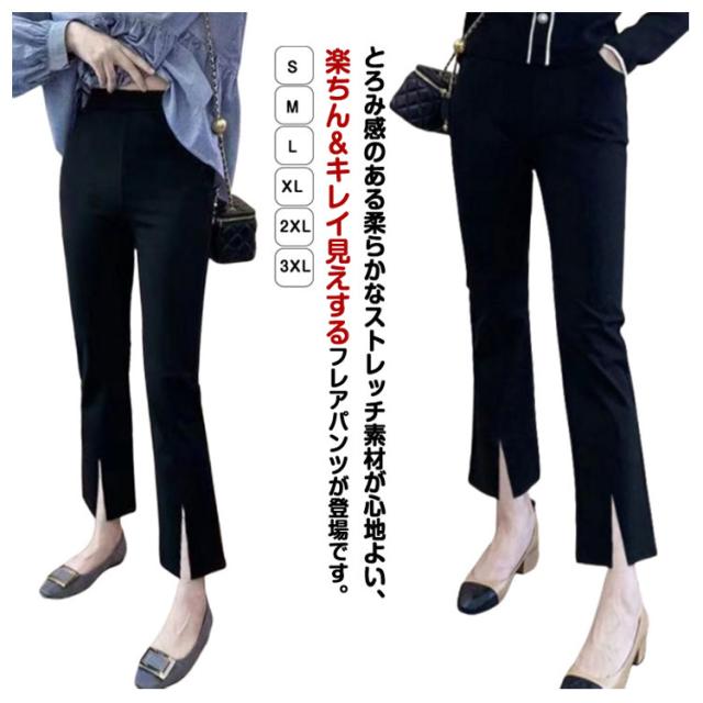 美脚 スリット 九分丈 フレアパンツ フレア フレア ロングパンツ レディース サイドスリット ストレッチパンツ 着痩せ パンツ 女性 春夏 ハイウエス セレモニー 大人 クロップドパンツ 無地 大きいサイズ ブラック 楽ちん きれいめ 春 黒 通勤 ギフト