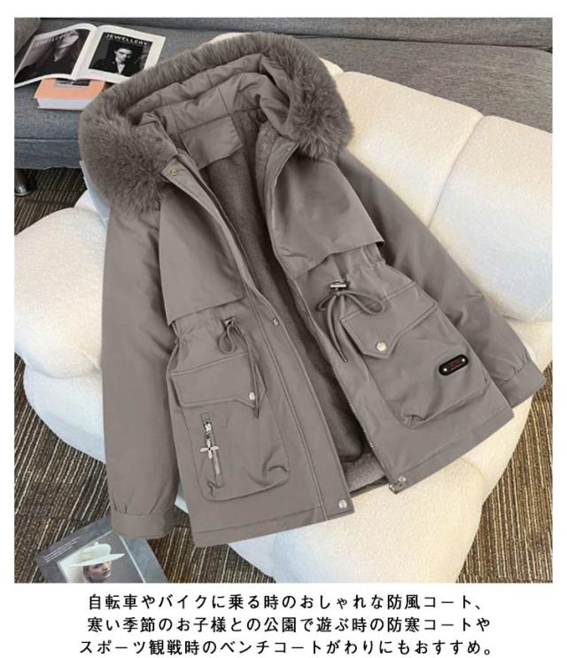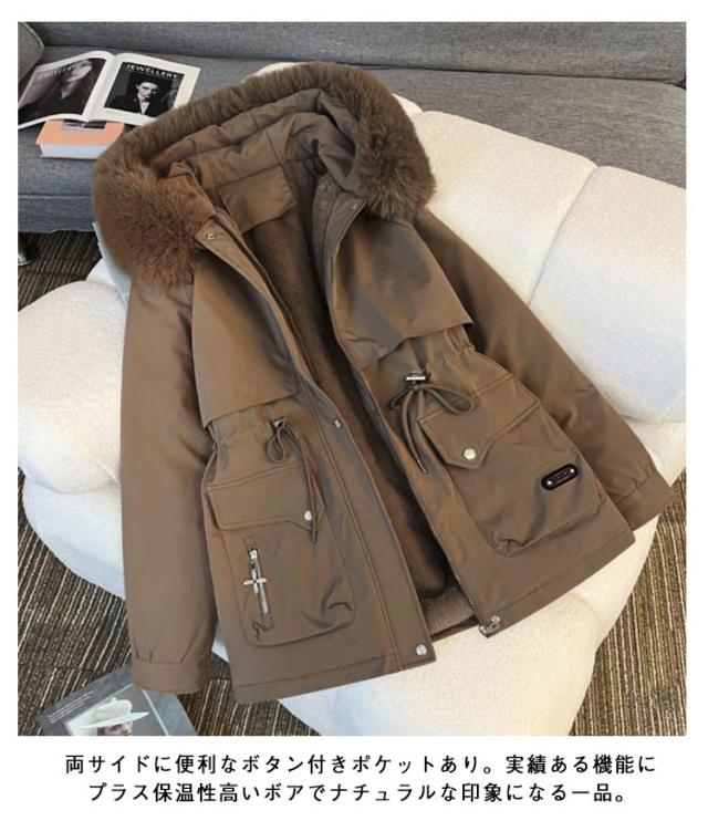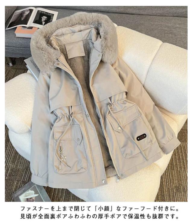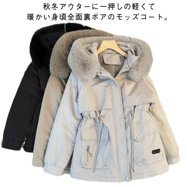 モッズコート ジャケット 裏起毛 レディース ファーコート アウター ファー ボアコート ムートンコート 裏ボア シープボア モッズコート モッズコート ブルゾン ミリタリー 厚手 フード付き ファー付き 大きいサイズ ボアジャケット ミディアム丈 温かい