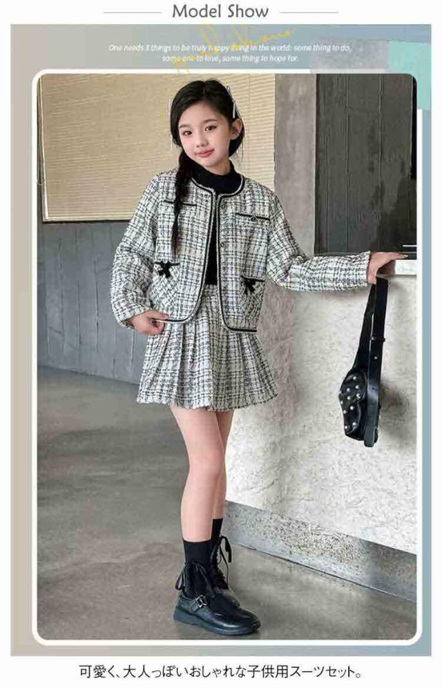 | 可愛く、大人っぽいおしゃれな子供用スーツセット。 セット内容:ノーカラージャケット+スカート フォーマルな装いをより本格的に仕上げてくれるアイテム。 入園式・卒園式・入学式・卒業式だけでなく、発表会、結婚式、七五三にもおすすめ。 サイズは110cmから170cmまで揃い、コーディネートに合わせて幅広い着こなしができます。 | |