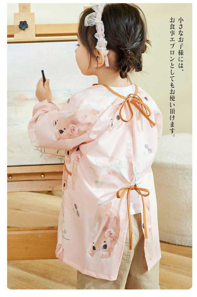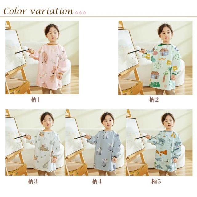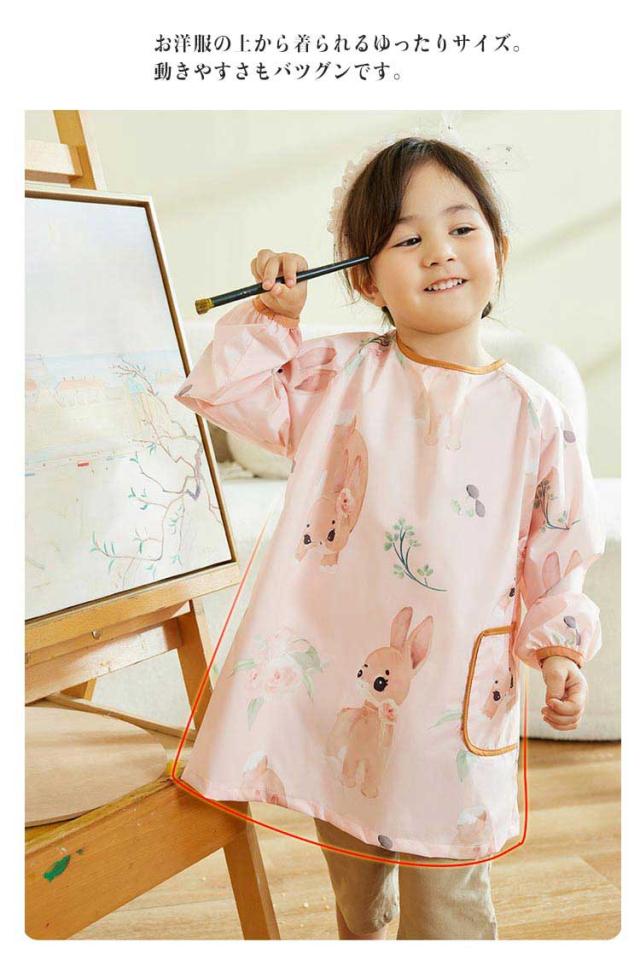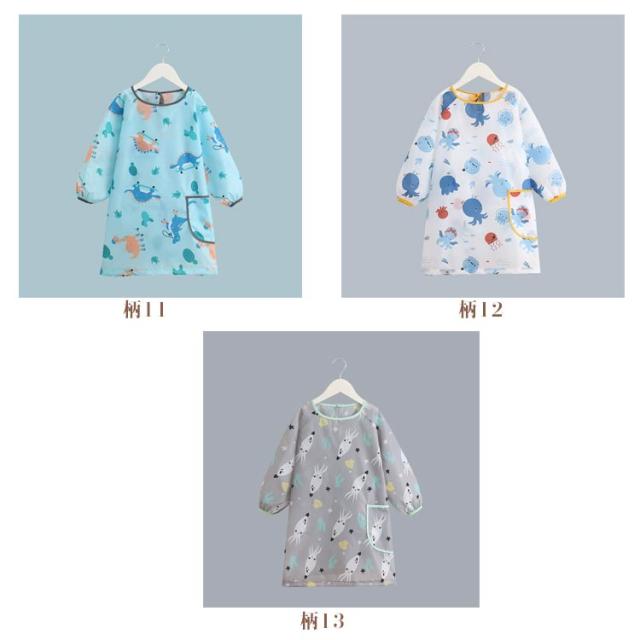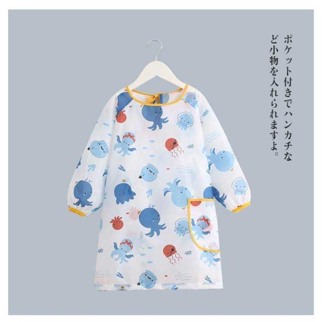 キッズ 男の子 書道 子供用 男の子 女の子 汚れ防止 割烹着 長袖 ポケット 撥水加工 子供服 お砂場着 女の子 習字 水遊び 総柄 エプロン スモック プレイウェア 遊び着 かぶり 通園 通学 スモッグ レイングッズ