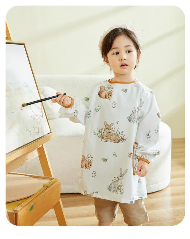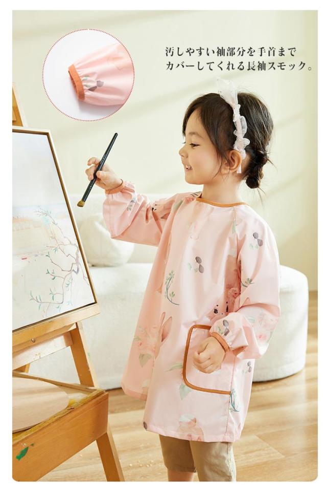 | シンプルデザインの子供用長袖スモックです。 汚しやすい袖部分を手首までカバーしてくれる長袖スモック。 お洋服の上から着られるゆったりサイズ。動きやすさもバツグンです。 撥水加工なのも嬉しいポイントです♪衣類の汚れ予防に◎ ポケット付きでハンカチなど小物を入れられますよ。 小さなお子様には、お食事エプロンとしてもお使い頂けます。 | |