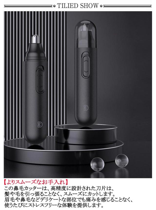 | 【よりスムーズなお手入れ】 この鼻毛カッターは、高精度に設計された刀片は、髪や毛を引っ張ることなく、スムーズにカットします。眉毛や鼻毛などデリケートな部位でも痛みを感じることなく、使うたびにストレスフリーな体験を提供します。 【360°ラウンドエッジで、すべての角度で優しくカット 】 立体拱形デザインと360°丸いエッジが、肌に優しくぴったりとフィットし、毛を効果的にカットします。鼻や顔のデリケートな部分でも安心して使用でき、見た目にも美しく、触れても滑らかなお手入れが可能です。 【簡単に取り外し&水洗い可能な刀頭で常に清潔に】 この鼻毛カッターは、どんなに高性能なデバイスでも清潔さがなければ意味がありません。このデバイスのすべての刀頭は、ワンタッチで簡単に取り外しでき、丸ごと水洗い可能。日常的に使っても常に衛生的に保てます。 【安全距離設計で、適度にカットし健康を守る】 フィルタリング機能を残しながら、過剰なトリミングを防ぐ安全距離設計。大切な鼻毛を適度にカットし、過剰なカットによる乾燥や健康リスクを避ける設計で、長期的にも安心して使えます。 【コンパクトで軽量、持ち運びもラクラク】 小さくて軽いデザインなので、ポケットやバッグにスッと収まります。外出時や旅行先でも、いつでもどこでも手軽にケアが可能です。 | |