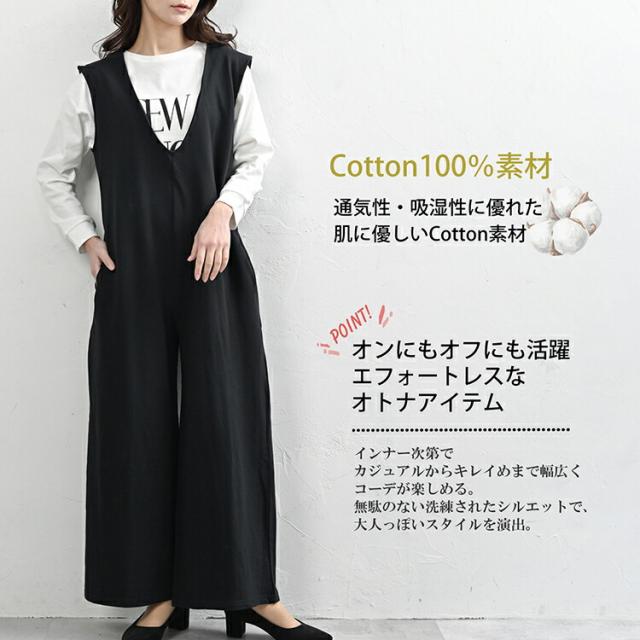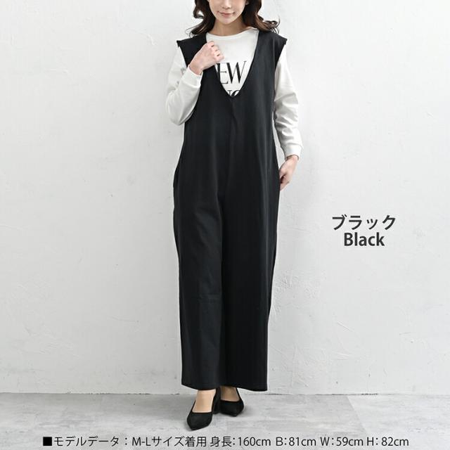 ディープVネックのコットン素材サロペットパンツ。 XXXXL 2XL 3XL 4XL ロング丈 ワンピース ゆったりサイズ ぽっちゃり女子 プラスサイズ 大きいサイズ レディース ノースリーブワンピース ロング丈ワンピース ロングワンピース パンツタイプ サロペットパンツ ジャンパーパンツ オールインワン オーバーオールパンツ ジャンパースーツ ロング丈 アンクル丈 ノースリーブ Vネック ワイドパンツサロペット 春服 秋服 春物 秋物 春ワンピース 秋ワンピース 春ワンピ 秋ワンピ ゆったり ラクラク 体型カバー コットン100% cotton100 ナチュラル素材サロペット 大人 カジュアル フェミニン エフォートレス シック シンプル リラックスフィット きれいめ かわいい かっこいい 着こなし おしゃれ 定番 春コーデ 秋コーデ ファッション 大きめ 女性 婦人用 ミセス 30代 40代 50代 2025 春新作 春 秋 黒 LL 3L 4L 5L 13号 15号 17号 19号 on-sa-op0347