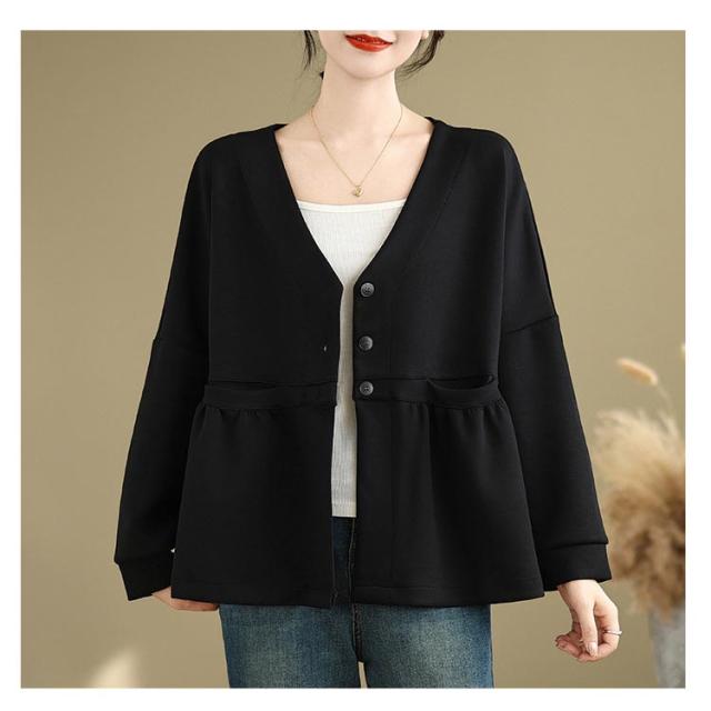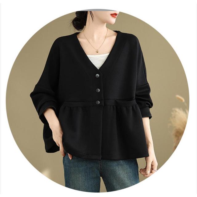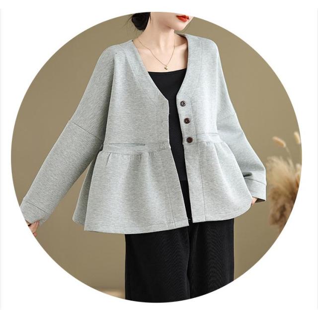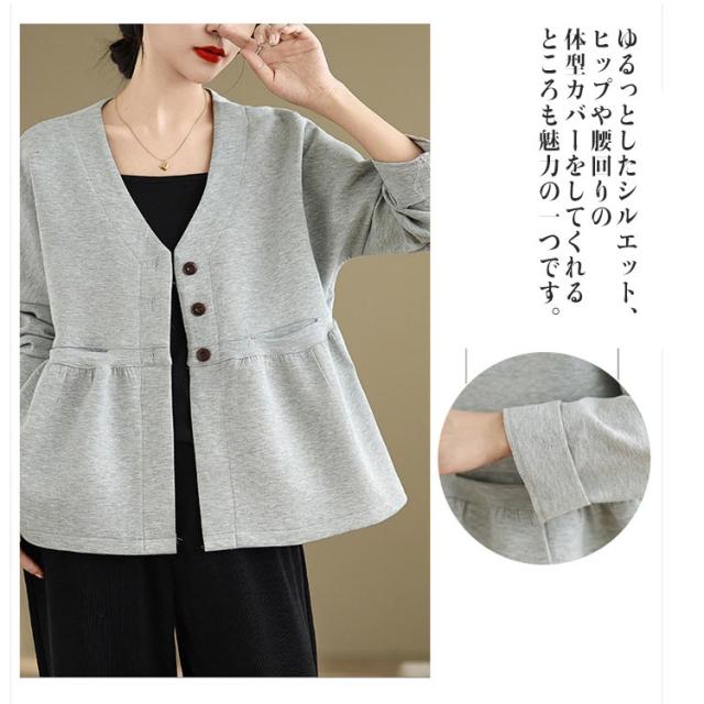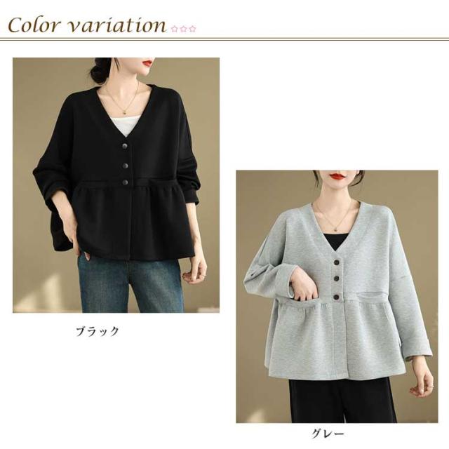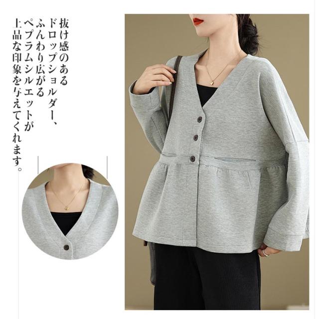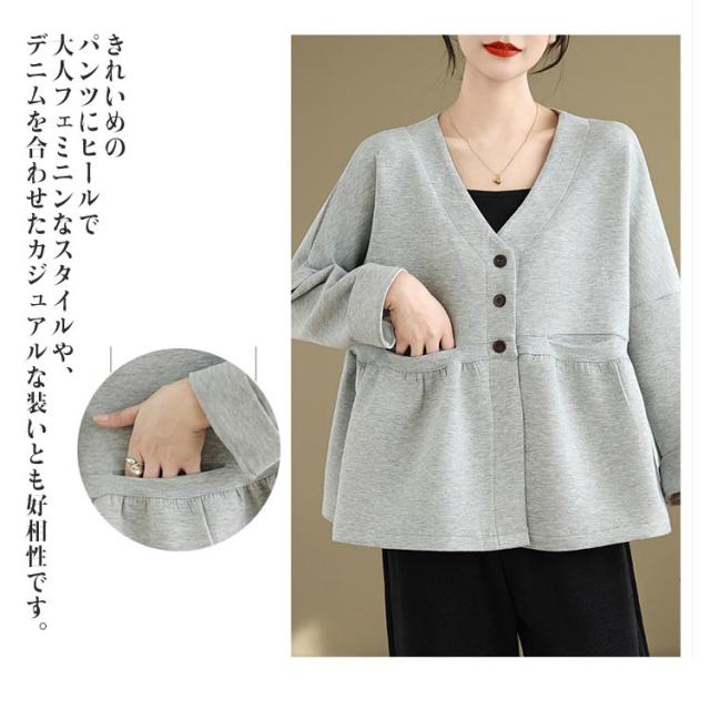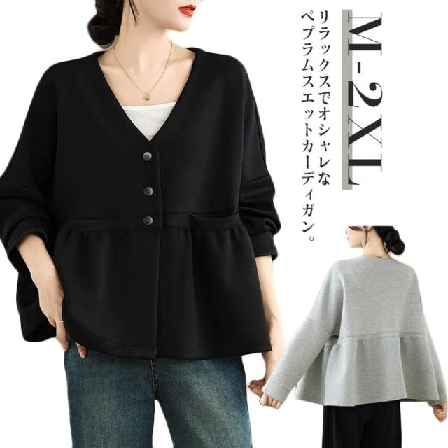 レディース ドロップショルダー Vネック スウェット フレア ドルマン カーディガン 春 羽織り スウェット ペプラム スウェットカーディガン 長袖 体型カバー 大きいサイズ ポケットあり 大人可愛い 春服 送料無料