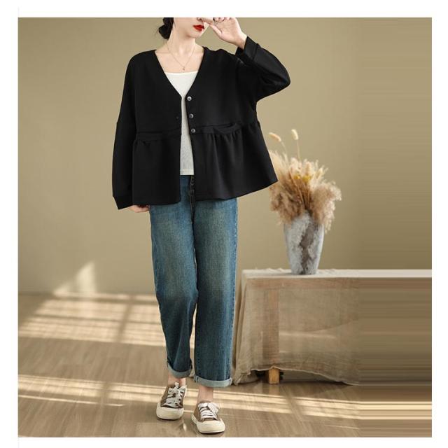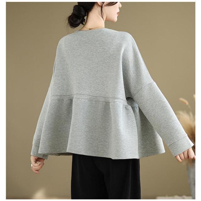 | リラックスでオシャレなペプラムスエットカーディガン。 抜け感のあるドロップショルダー、ふんわり広がるペプラムシルエットが上品な印象を与えてくれます。 ゆるっとしたシルエット、ヒップや腰回りの体型カバーをしてくれるところも魅力の一つです。 きれいめのパンツにヒールで大人フェミニンなスタイルや、デニムを合わせたカジュアルな装いとも好相性です。 | |