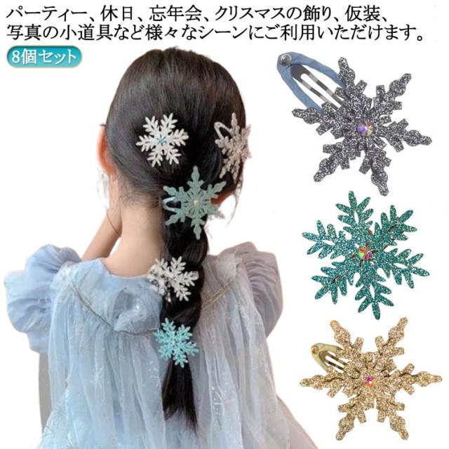 前髪 ヘアクリップ スリーピン クリスマス 髪飾り ヘアピン 雪の結晶 ヘアピン お姫様 パッチン留め ヘアアクセサリー プリンセス ヘアピン こども キッズ 8個セット 雪の結晶 ヘアアクセサリー レディース キッズ ガールズ 雪 雪の結晶 雪の華