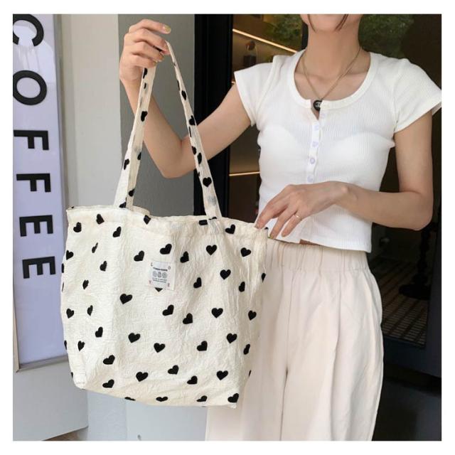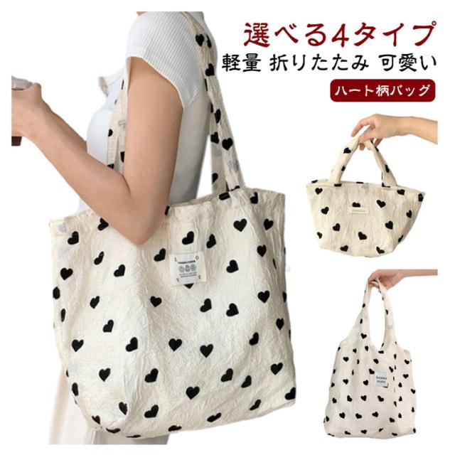ハート柄バッグ サブバッグ ショルダーバッグ バッグ エコバッグ お買い物 大容量 ハート柄 折りたたみ ハート柄バッグ 軽量 手提げ 韓国風 お洒落 鞄 トート 可愛い 肩掛け 選べる4タイプ 大容量 お出かけ