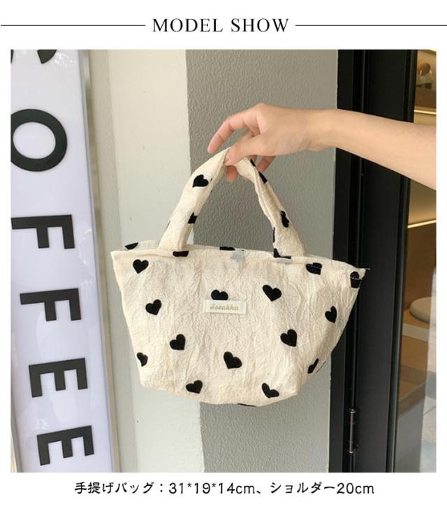 | 【選べる4タイプ】【ハート柄バッグ】 今年トレンドの大人気のハート柄デザイン! ガーリーなハート柄もモノトーンなら大人っぽく持てて◎ 荷物もたくさん入るので、通勤・通学時の サブバッグとしても、コーデのアクセントにも◎ 手提げバッグ:31*19*14cm、ショルダー20cm 肩掛けA:30*38*8cm 肩掛けB:31.5*30*10cm、ショルダー31.5cm 肩掛けC:44*34*15cm、ショルダー28cm | |