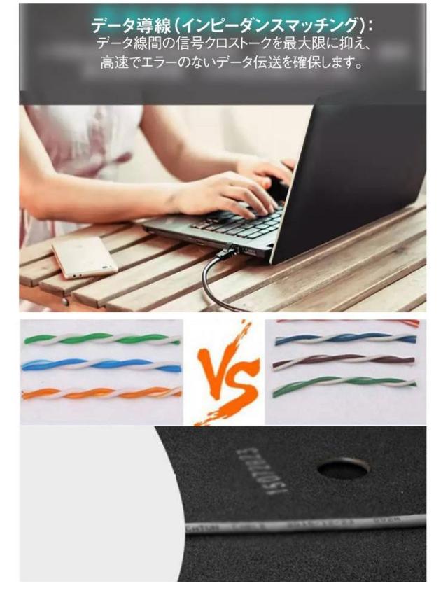 | モジュール式応力緩和装置: PVCと重ねてインジェクション成形され、折れにくく、耐久性に優れ、データの誤りのない伝送を確保します。 滑らかで保護された爪設計: 高い柔軟性を持ち、RJ45コネクタの爪部分を衝撃から保護し、破損を防ぎます。差し込み・取り外しが容易です。 超カテゴリー5 LANケーブルの水晶コネクタには50ミクロンの金メッキ銅接点を採用: 最適な伝導性を提供し、データの損失を防ぎます。 データ導線(インピーダンスマッチング): データ線間の信号クロストークを最大限に抑え、高速でエラーのないデータ伝送を確保します。 弾性PVC外部: 柔軟で折れにくく、耐久性に優れています! | |