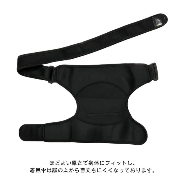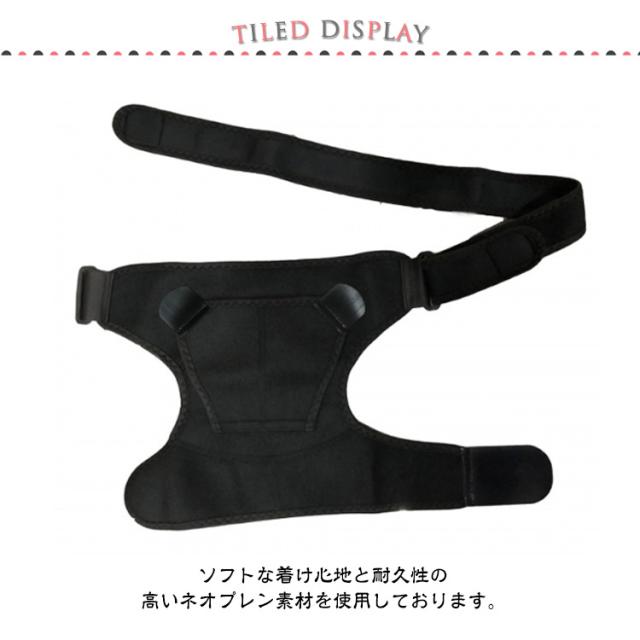 | 【肩サポーター】 【肩の痛みを対策に】 四十肩や五十肩や慢性的な肩こり、脱臼や断裂などスポーツでの怪我、肩まわりの疲労などに最適です。 胸と腕の部分がマジックテープ式となっておりますので、ご自身の体に合わせて締め付け具合を調整する事が可能です。 ソフトな着け心地と耐久性の高いネオプレン素材を使用しております。 伸縮性や通気性も兼ね備えており適度に肩を加圧してくれるので、長時間のご使用でも快適にご着用いただけます。 様々な肩の違和感におすすめです!男女ご利用頂けます 日常の悩み以外に、ゴルフや野球等、スポーツ時の肩の保護のための着用もおすすめします。 ほどよい厚さで身体にフィットし、着用中は服の上から目立ちにくくなっております。 | |