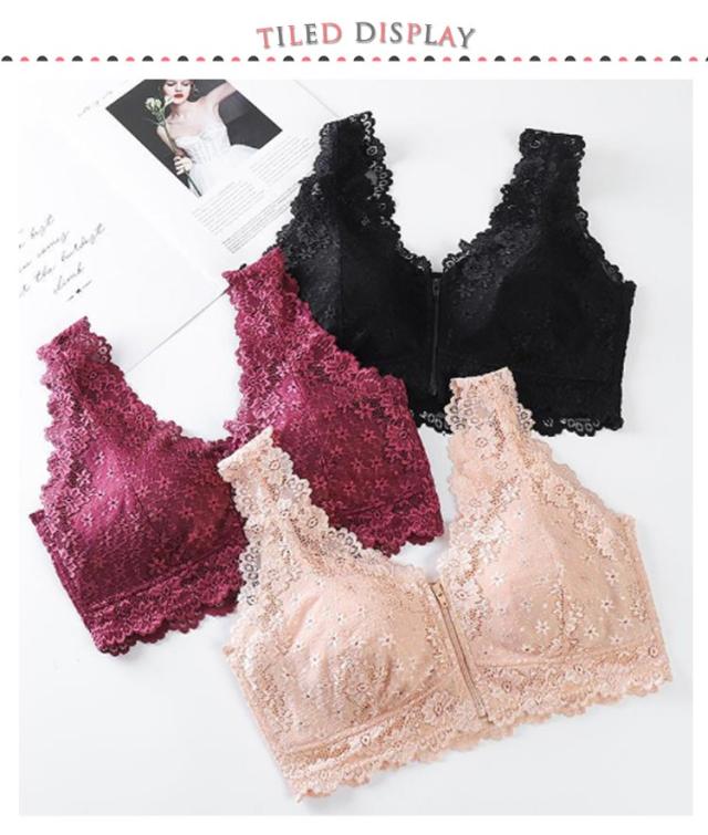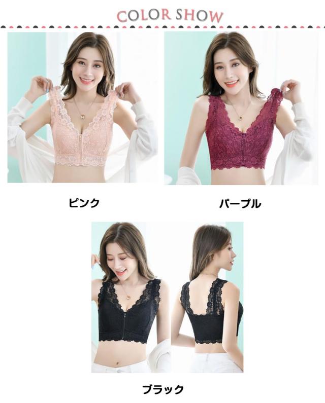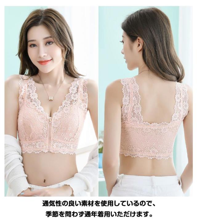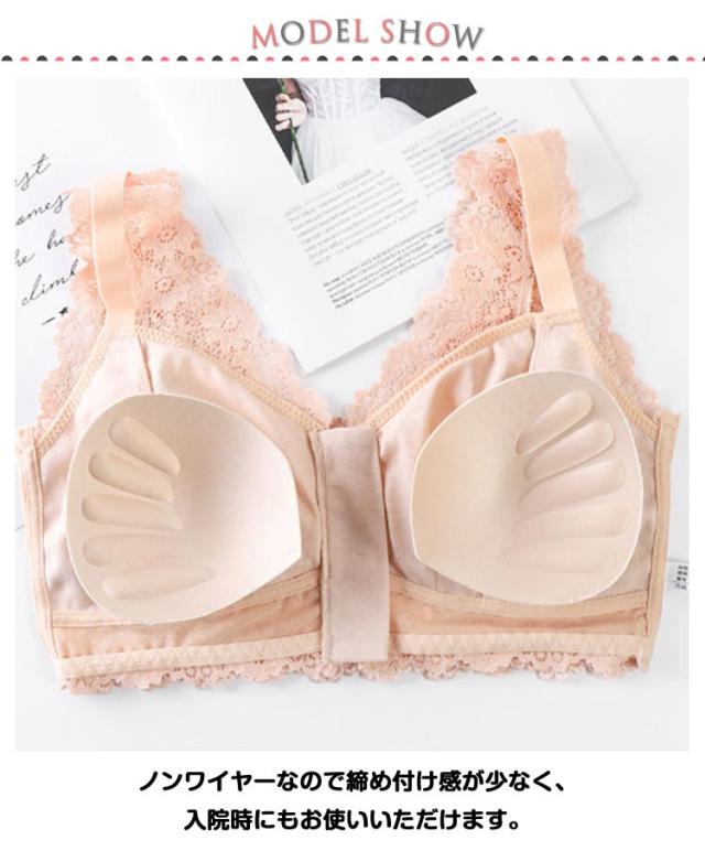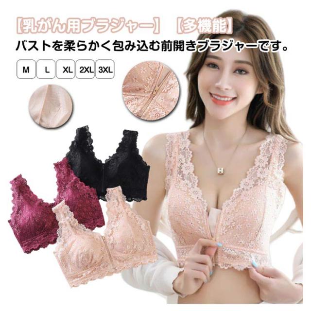 乳がん用 前ジッパー レース 入院 ブラジャー 下着 ブラジャー ノンワイヤーブラ 術後 乳癌 乳ガン インナー 乳がん用 ノンワイヤー ストレッチ性 通気性 取外し可能パッド 前開き お洒落 フラワーレース 乳がん 手術後 授乳ブラ