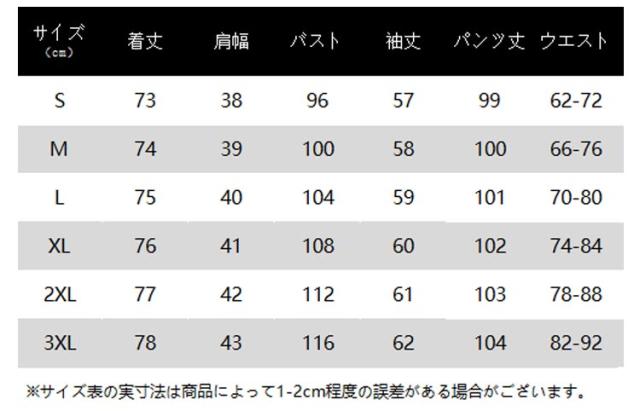 | 色 | 上下セット/ホワイト 上下セット/ブラック 上下セット/カーキー 上下セット/キャメル 上下セット/ピンク 上下セット/パープルピンク 上下セット/ブルー 上下セット/オレンジ 上下セット/グリーン 上下セット/イエロー 上下セット/蛍光オレンジ 上下セット/アボカドグリーン |