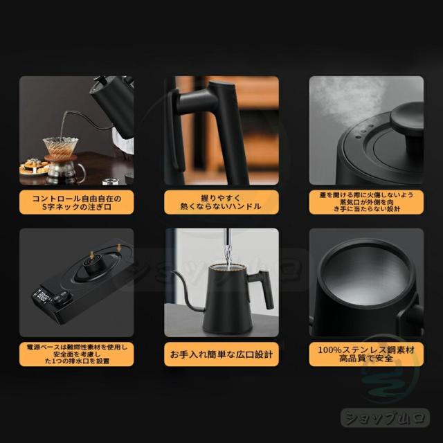 電気ケトル 温度調節 ケトル ポットドリップケトル 湯沸かしケトル 保温機能 電子ケトル コーヒー ケトル ステンレス 湯沸かしポット小型 防止安心保証