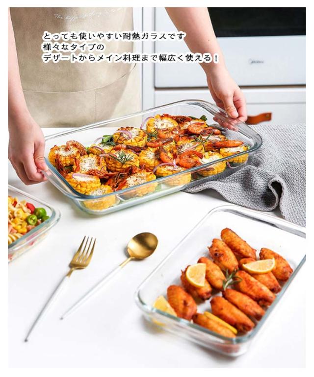 | グラタンやケーキなどにオススメです。 オーブンで焼いたケーキやメイン料理は、クリアなガラスなのでそのままテーブルウェアとしても使えます。 食洗機対応なのでお手入れも楽々!電子レンジ&電気オーブン可能。 冷凍庫にも使えるから冷たいデザートも作れる。 とっても使いやすい耐熱ガラスです♪ 様々なタイプのデザートからメイン料理まで幅広く使える! | |
