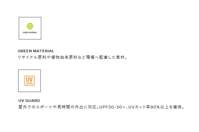 UVガード(UPF30-50+、紫外線カット率90%以上)機能付き(30%伸長時のデータ)。
