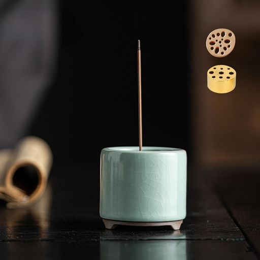 【多機能な香立てデザイン】 付属の真鍮製9穴お香たてと蓮根形状お香立ては、多様な太さの線香に対応できる巧妙なデザインです。この多機能性により、香炉は様々な場面で利用でき、日常生活の中で多様な香りの楽しみを提供します。特に、和の香りを楽しむ場や、静かな時間を求める場において、香りの演出ができます。伝統的な線香や盤香を焚いて、お部屋を心地よい香りで満たすことができます。