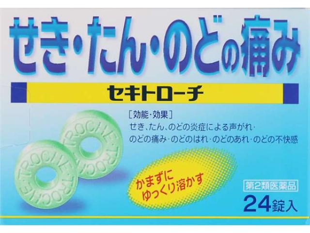 「セキトローチ」は、口中で徐々に溶かすことにより、咳を鎮め、たんをとり、のどの炎症による声がれ・のどの痛み・のどのはれ・のどのあれ・のどの不快感に優れた効果をあらわします。