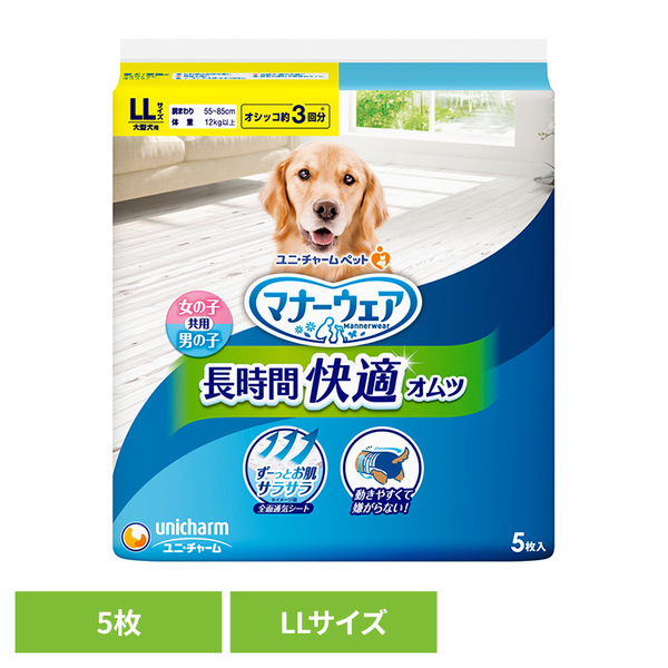 ペットグッズ おむつ マナーウェア 長時間快適オムツ LLサイズ5枚 ユニチャーム株式会社 犬 猫 おむつ 女の子 男の子 大型犬 介護 生理 マーキング ユニチャーム
