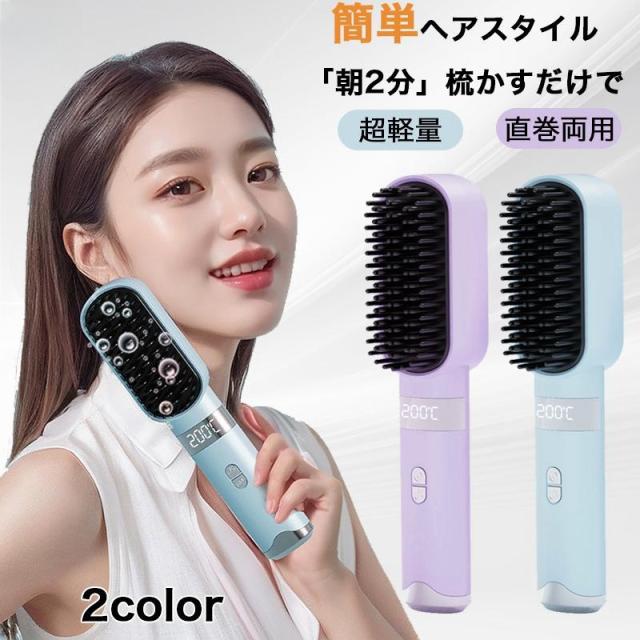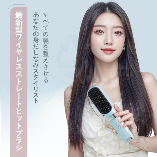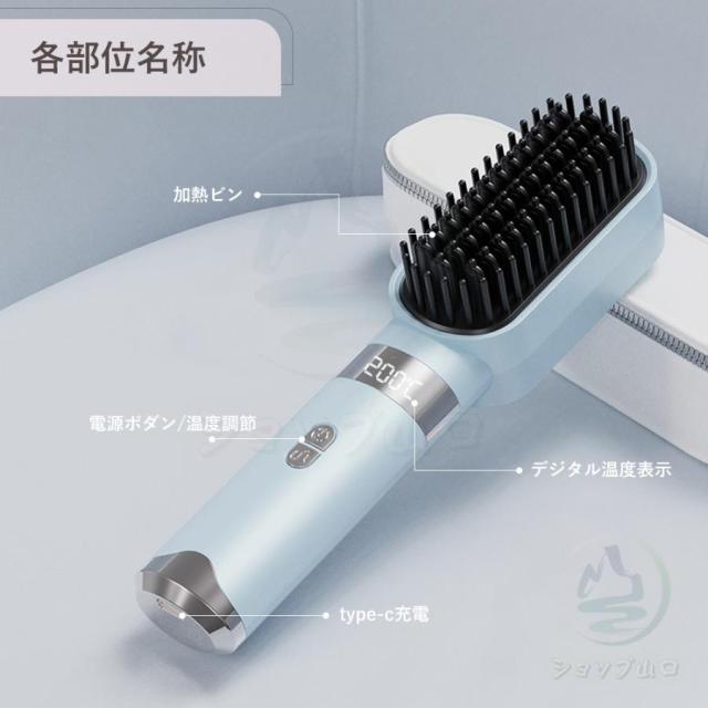 ヘアアイロン ヘアアイロンブラシ ヒートブラシ ヘアアイロンストレート ブラシ型 コードレス マイナスイオン 4段階温度 急速予熱 ミニ 耐熱ケース 静電気防