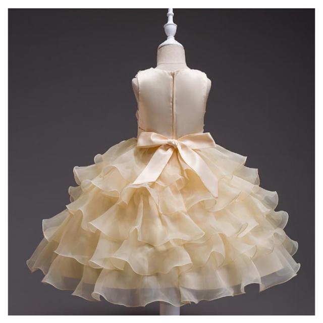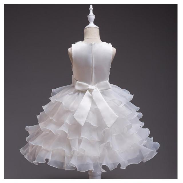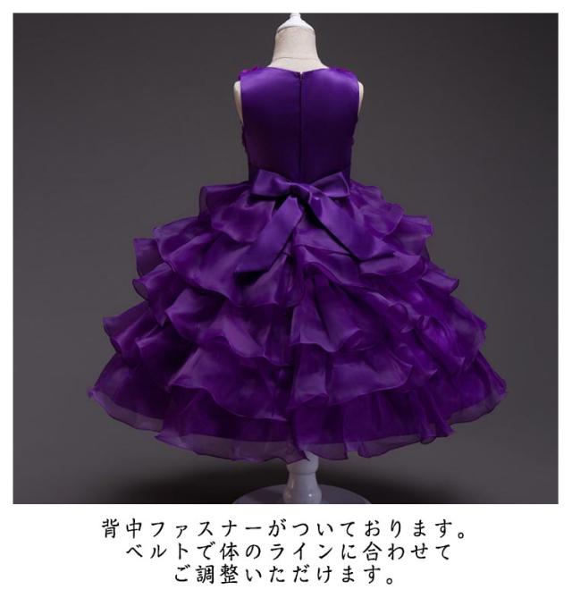 | 身頃にたくさんの花花が縫い付けられており、とっても華やかで可愛い印象のドレスです。 背中ファスナーがついております。ベルトで体のラインに合わせてご調整いただけます。 ウエストに大きなリボンをつけた素敵なドレスです。 5枚重ねのチュールは透明感たっぷりです。 | |