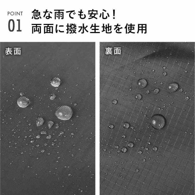 「両面撥水加工で安心」表地と裏地の両面に撥水加工を施した生地を使用。雨や水濡れから荷物を守ります。汚れがつきにくく、サッと拭くだけでお手入れができるのも魅力です。