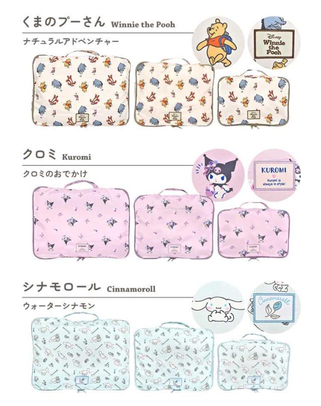 トラベルポーチ 3点 セット かわいい おしゃれ キャラクター 旅行 仕分け ポーチ パッキング 着替え 旅行用ポーチ トラベルグッズ プーさん クロミ シナモロール トムとジェリー おさるのジョージ カービィ 衣類ポーチ トラベルバッグ パッキング 大容量 整理整頓 レディース