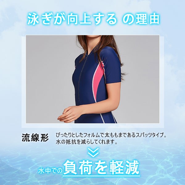 【ポイント5倍!】競泳水着 レディース アリーナ 半袖 フィットネス水着 競泳水着 オールインワン 練習用 体型カバー スイミング パッツ 競泳練習水着 温泉 部活 agesugi_ssp