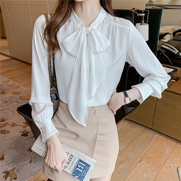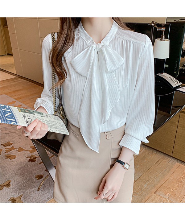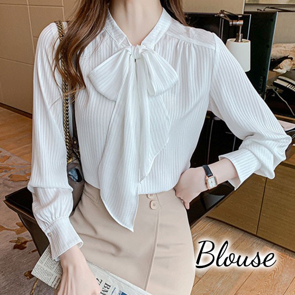 【ポイント5倍!】シャツ レディース 長袖 ブラウス トップス 無地 可愛い 秋服 ゆったり ボウタイリボン シンプル 30代 40代 ママ 体型カバー 入園式 agesugi_sfa