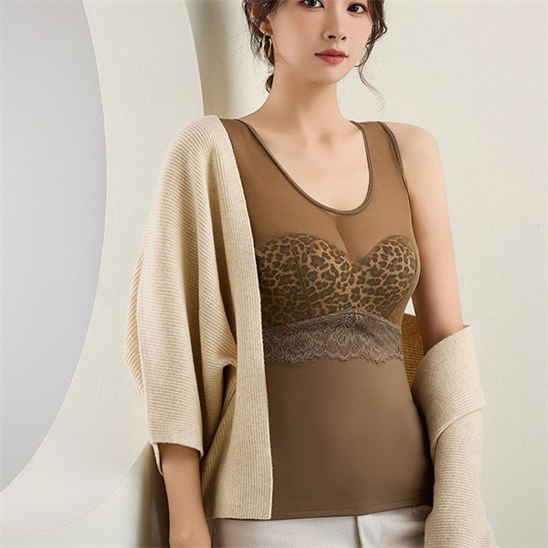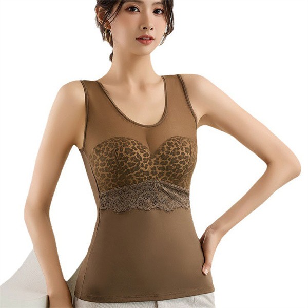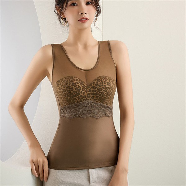 【ポイント5倍!】爆売中 セール ブラトップ タンクトップ カップ付きタンクトップ レース ヒョウ柄 ボディスーツ カップ付き ソフト 快適 フルカップ 綿混 agesugi_sfa